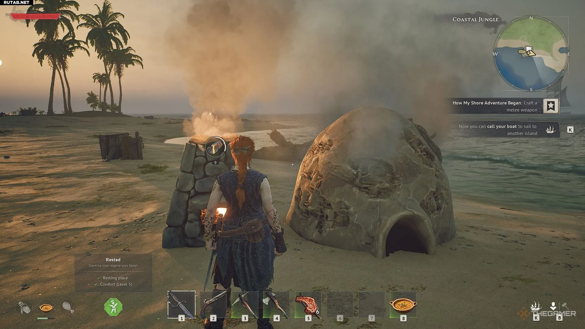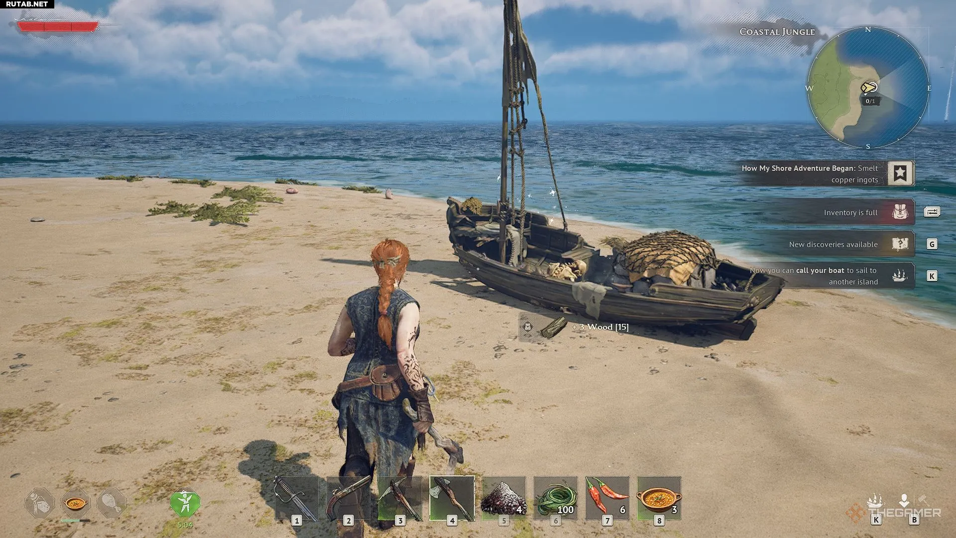 Когда вы натыкаетесь на разбитые корабли и обломки на пляжах, обязательно разбирайте их как можно скорее. Из них вы получите древесину, а иногда и гвозди — важный строительный материал.