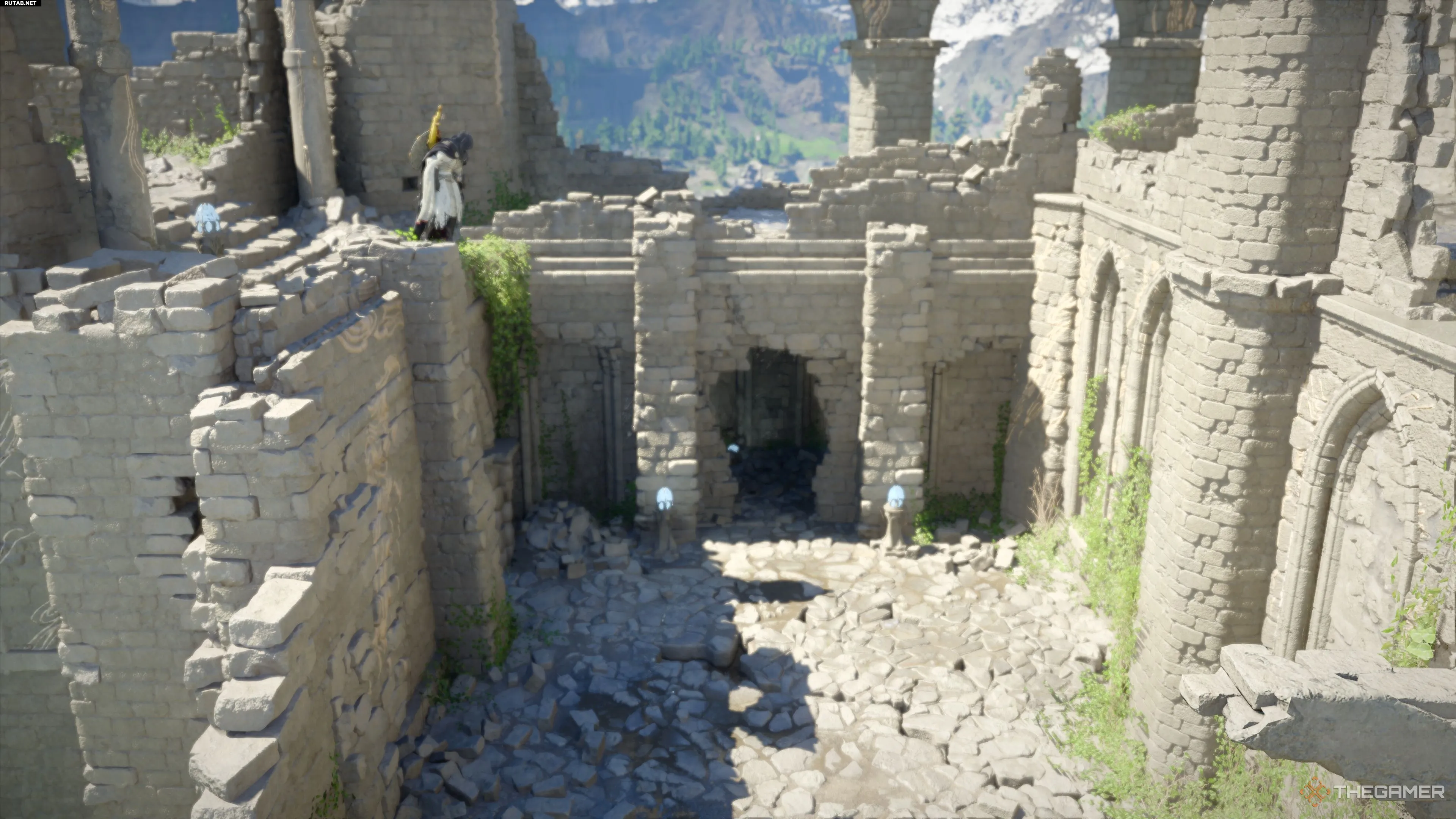 Далее вам нужно найти обломок Столба. Для этого отправляйтесь к северной стороне Руин и взберитесь по стенам на вершину здания.
