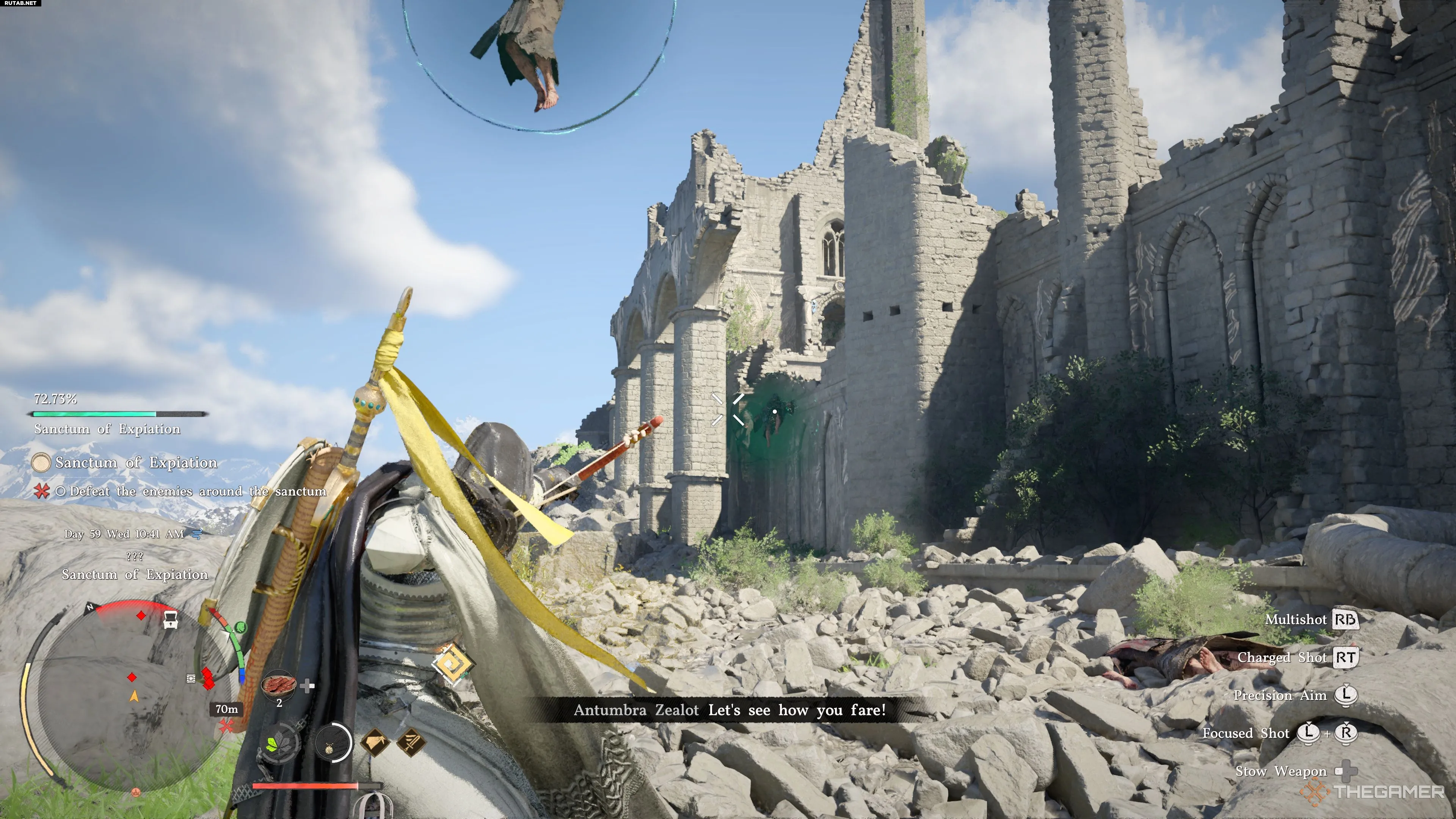 Добравшись до Святилища искупления, вы встретите множество Фанатиков ордена Антумбры. Расправьтесь с врагами на земле и быстро переключите внимание на летающих противников сверху.