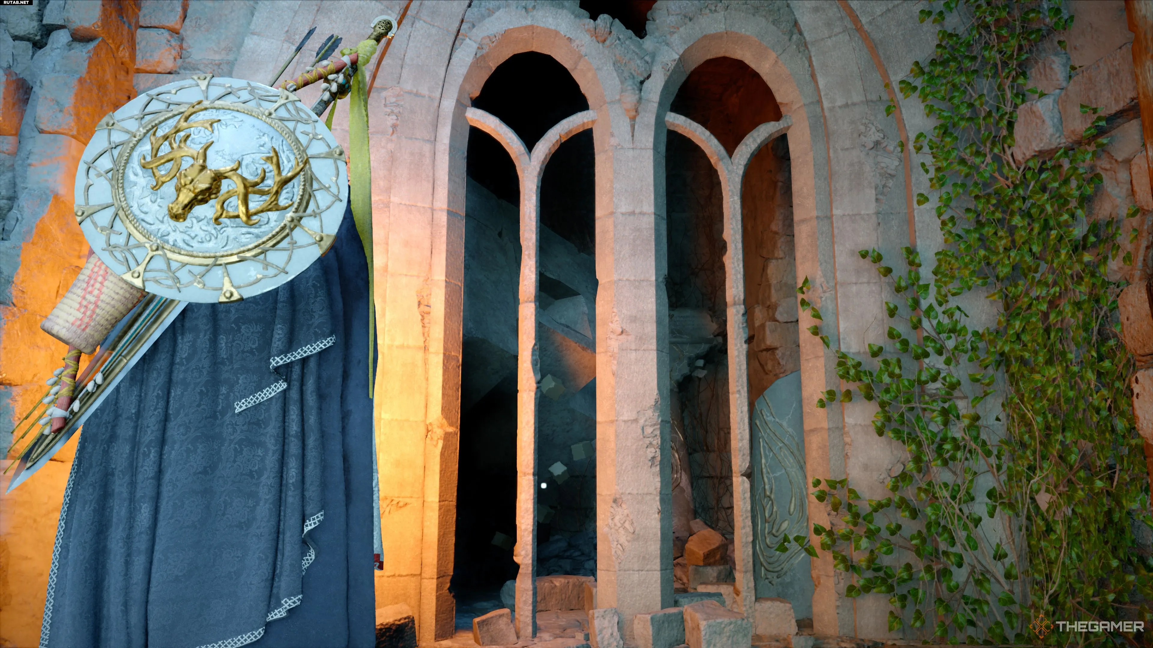 Первый, более быстрый способ — найти дверной проём, увитый лианами, возле южной стороны Руин.