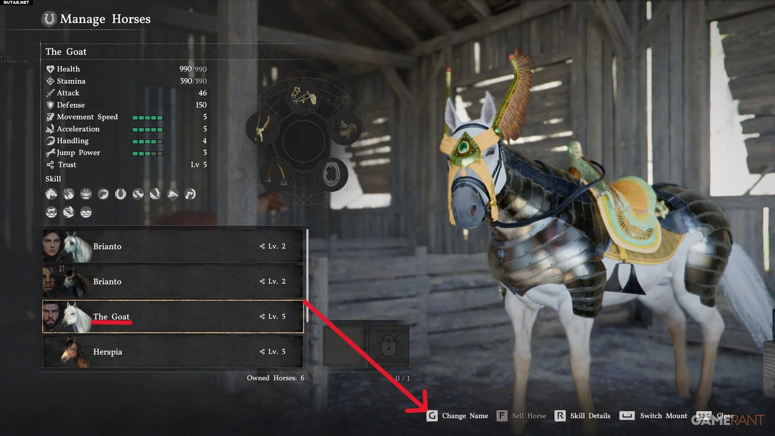 - Когда вы выбрали лошадь, имя которой хотите изменить, нажмите R3/G.