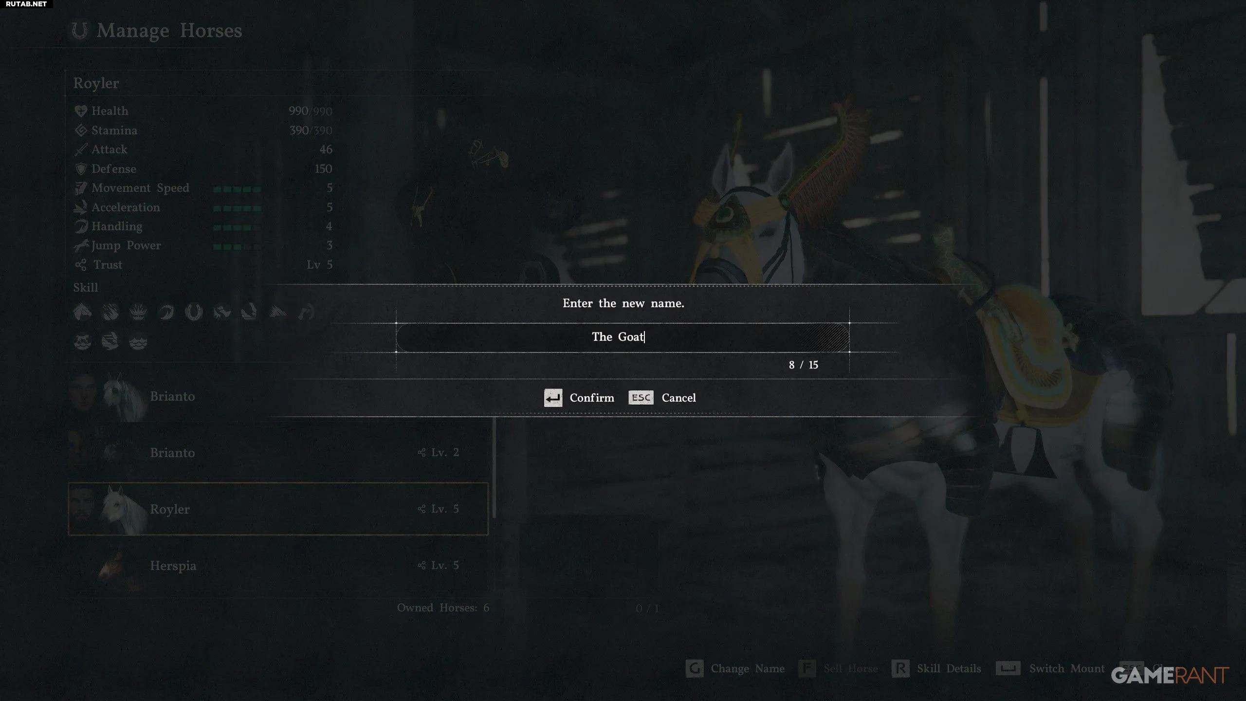 - Вы можете изменить имя любой лошади, включая легендарных.