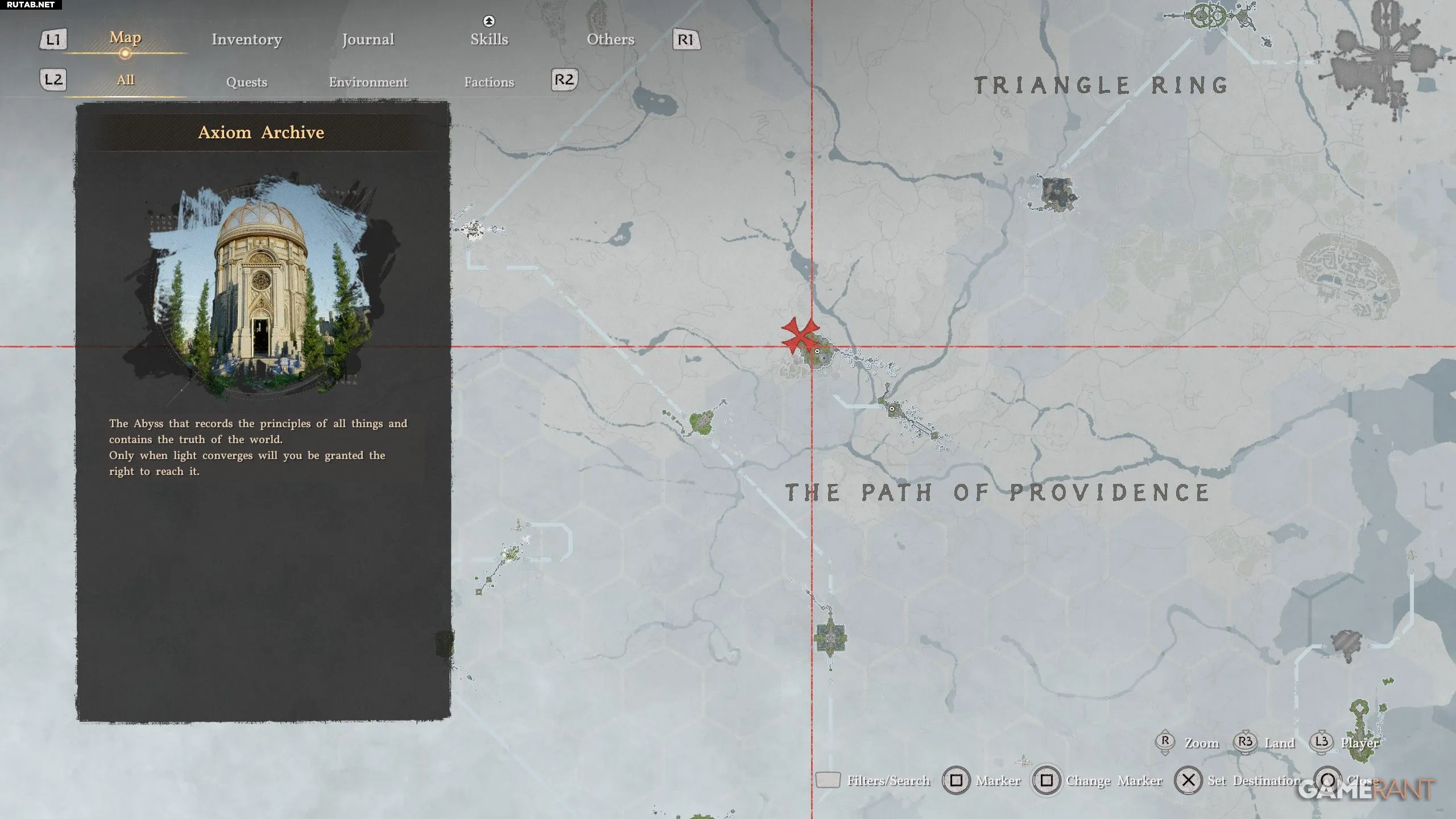 - Вход в Аксиомный архив осуществляется через Бездну: нажмите R3 над городом Эрнанд.