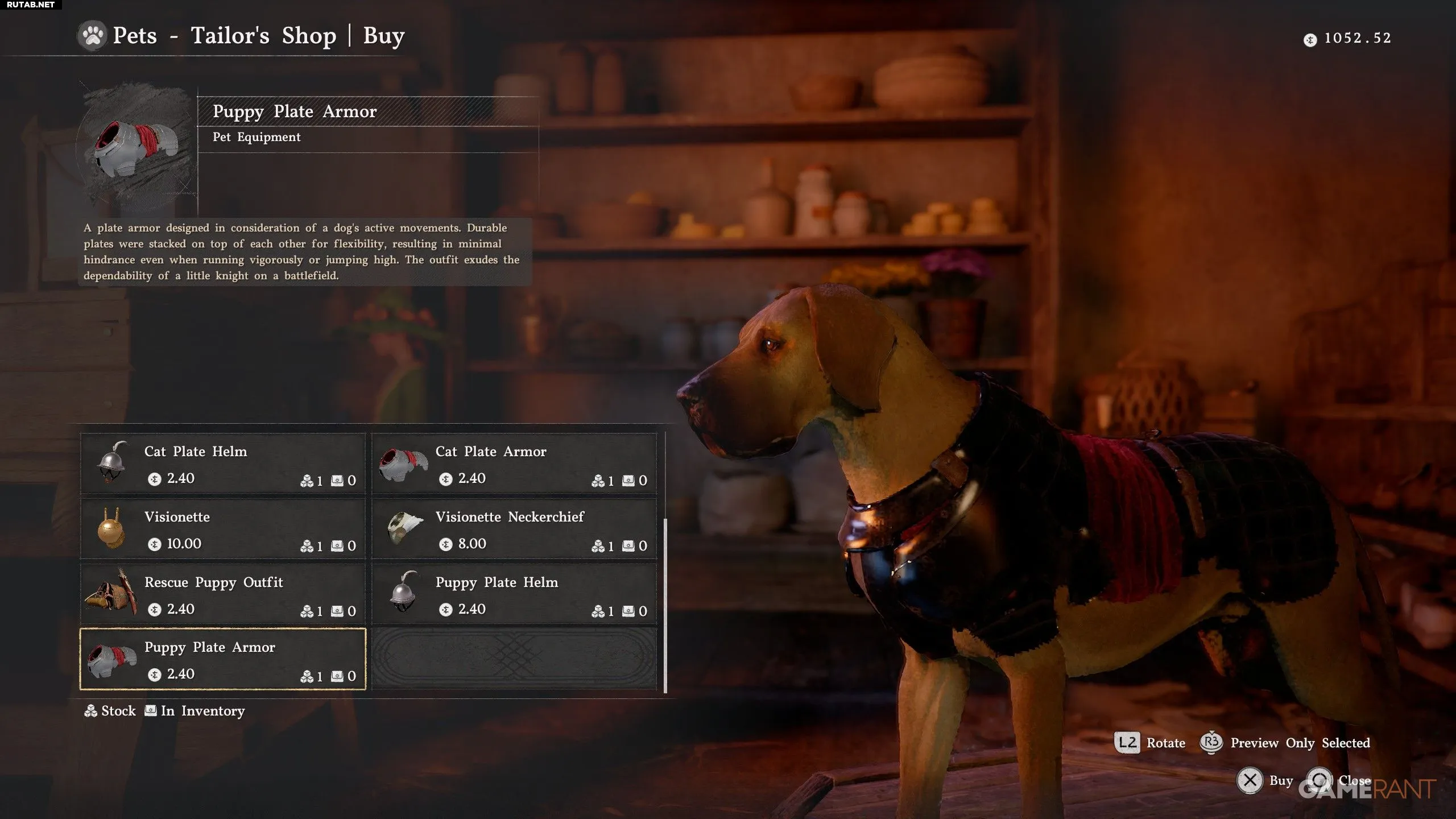 | Латный шлем щенка | Снаряжение для питомцев | 2,40 серебряных монет |