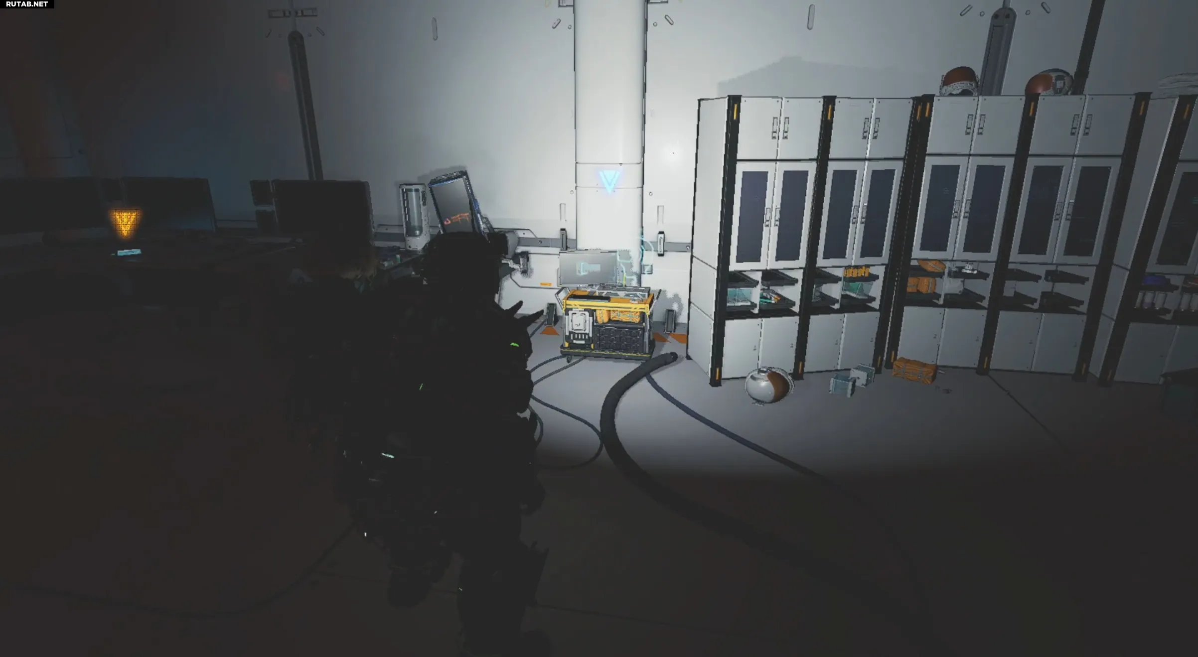 Пройдите глубже в зону входа в шахты, пока не окажетесь в комнате с натянутым через неё зиплайном. Прежде чем воспользоваться им, осмотрите правую часть комнаты. Обучающие данные лежат на платформе прямо на виду, в том же месте, что и аварийный люк №3. Если вы видите зиплайн, вы уже стоите рядом с предметом.