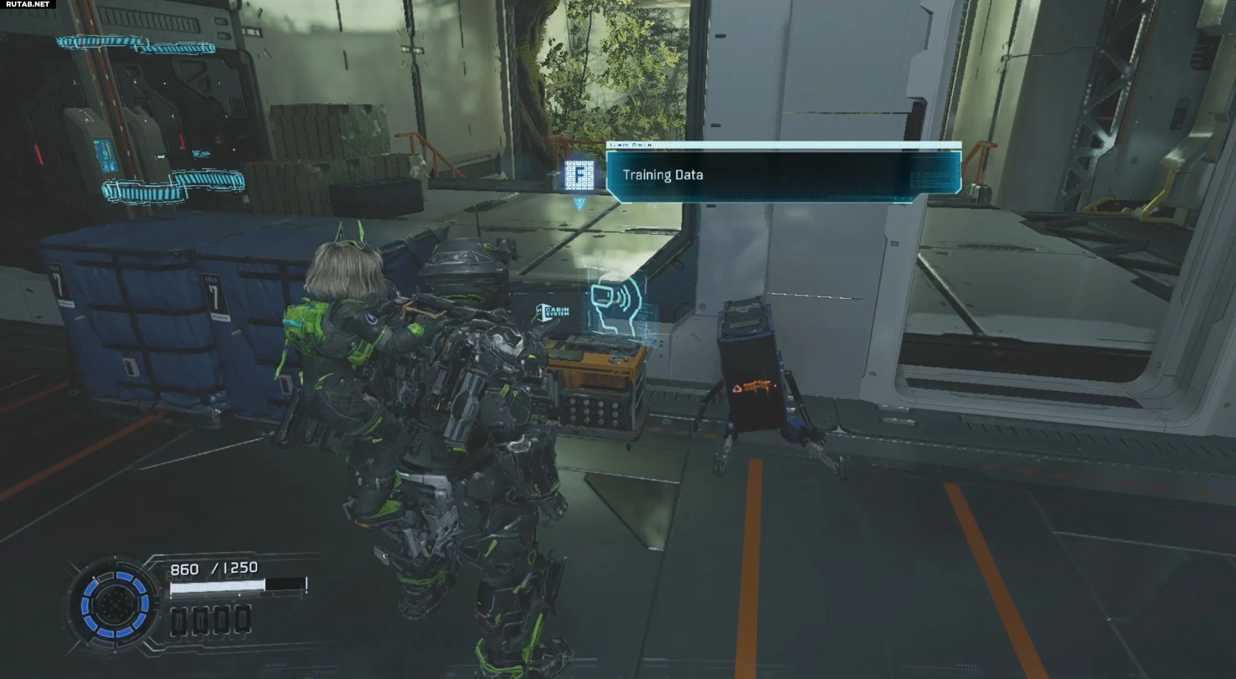 Этот предмет появляется в начале Terra Dome, после кат-сцены, где ветки, заражённые Лимом, преграждают путь. Пройдите мимо голографической выставки оленей и найдите небольшую боковую комнату слева. Внутри стоит сломанный Mr. Cabin. В сундуке в этой комнате лежат модификация «Дешёвый выстрел» и ваши первые Обучающие данные — оба предмета в одной точке сбора. Найти легко, но легко и пропустить, если пробежать мимо.