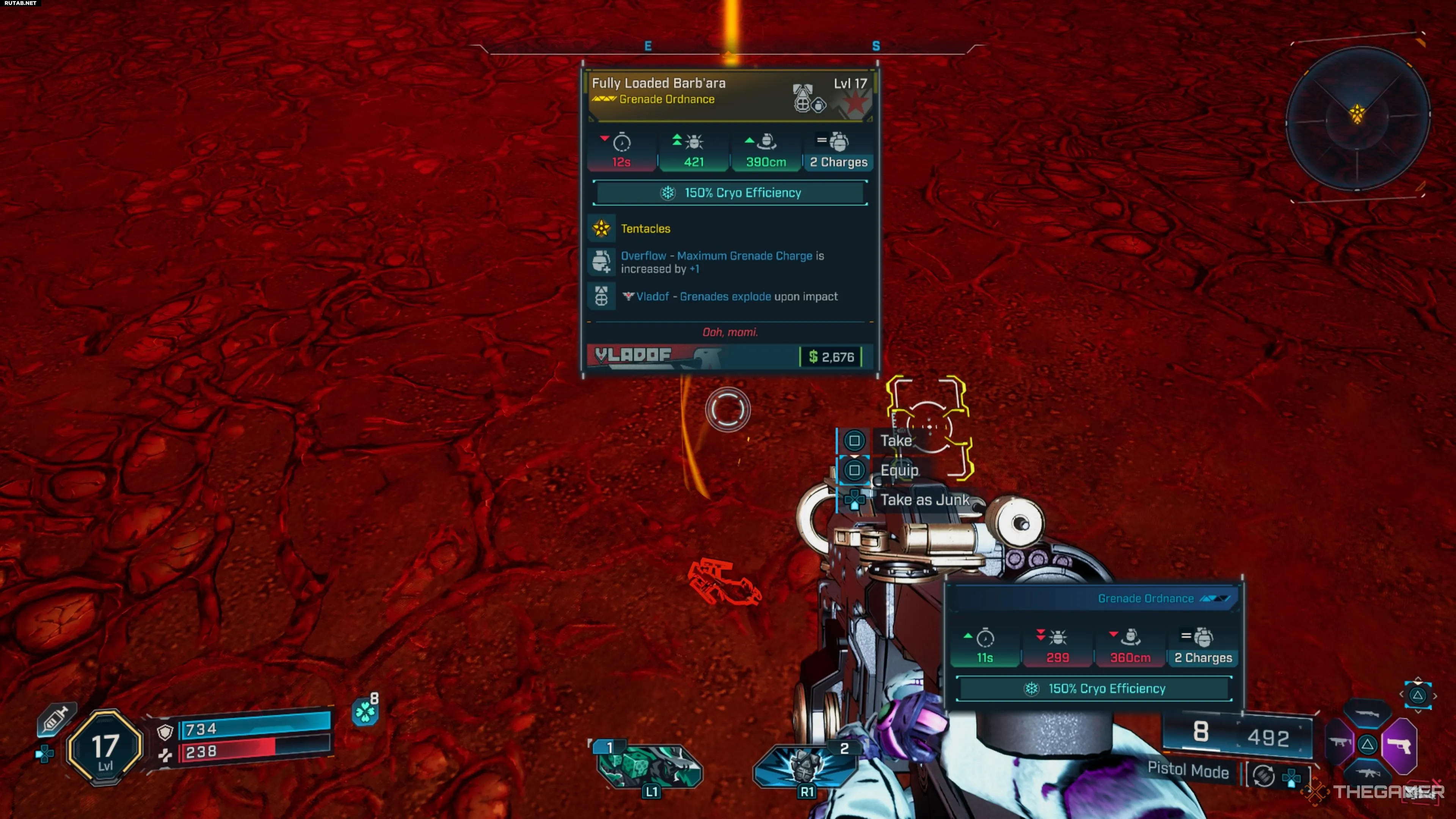 Барб'ара— Легендарная граната (Владоф). Элементы: нет, огонь, шок, крио, коррозия, радиация. При взрыве создает щупальца, которые порождают дополнительные гранаты. Выпадает с Безумного Эрла в Кровавых Лощинах.