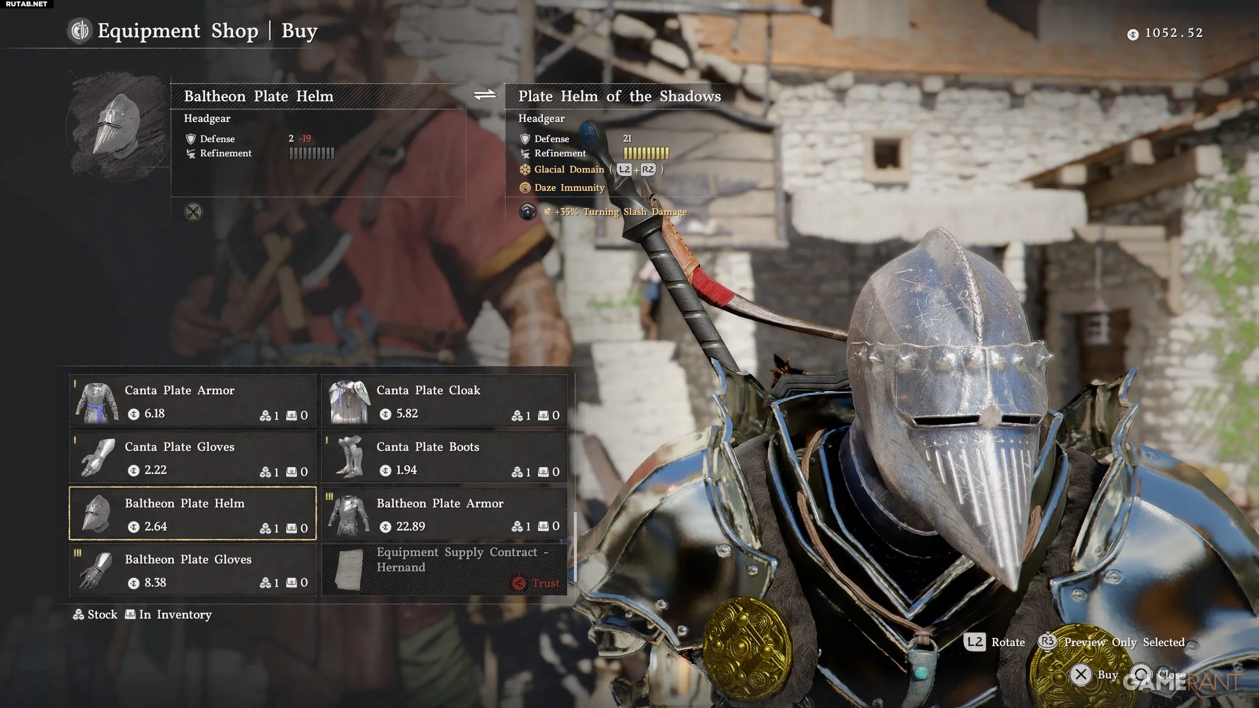 Чтобы получить Броню Балтеона, потребуется Корона Эрнанда и визит в Лавку снаряжения в Городе Эрнанд. Ниже мы покажем, где найти оба этих предмета, а также продемонстрируем сам набор брони с его характеристиками.