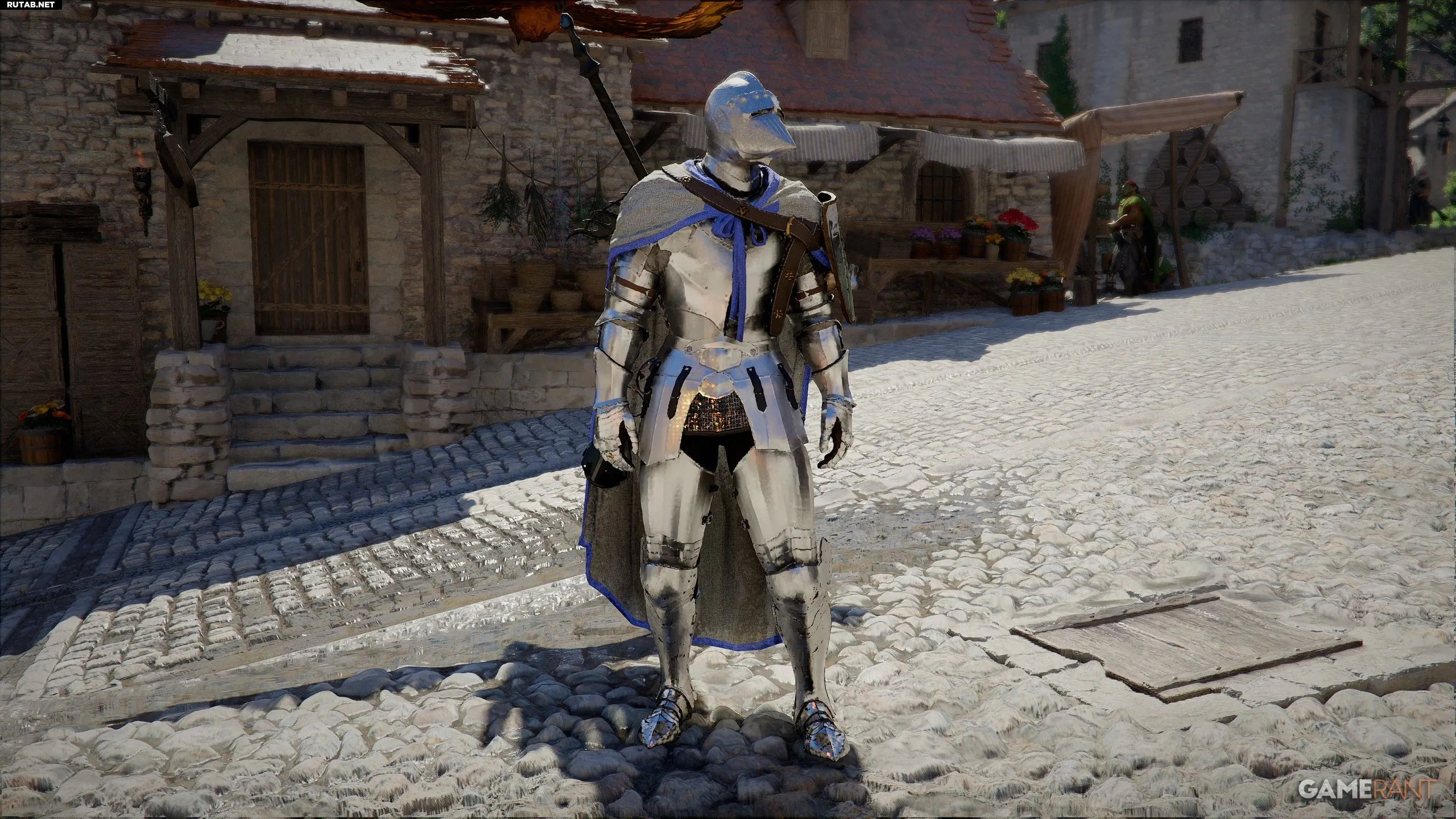 В наборе нет Плаща или Сапог, так как они не продаются у того же торговца. Рекомендуем приобрести Латный плащ Канты и Латные сапоги Канты у того же продавца — они хорошо сочетаются с этим сетом.