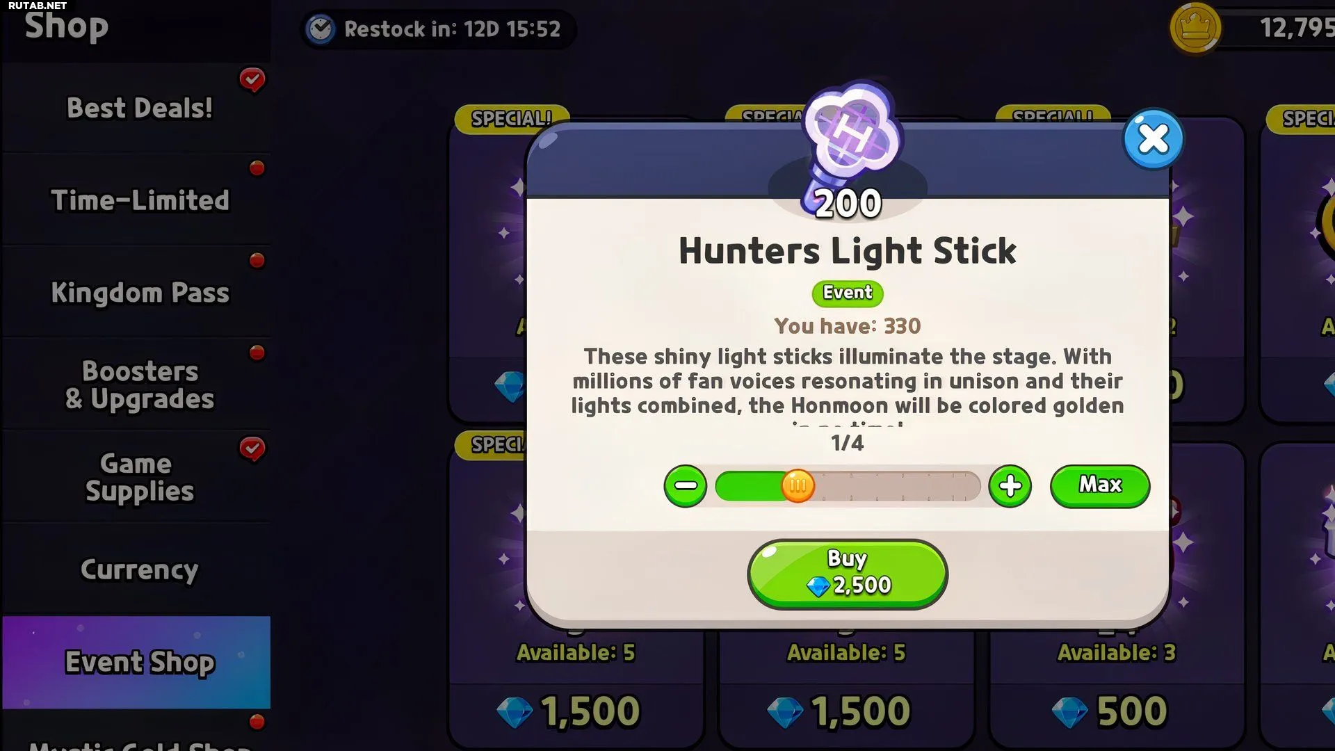 Ещё один способ получить больше Светящихся палочек охотников — зайти в магазин ивента и взять их из раздела «Лучшие предложения». Вы можете получать по 40 штук бесплатно каждый день, что в сумме даст 1200 палочек, если заходить ежедневно.