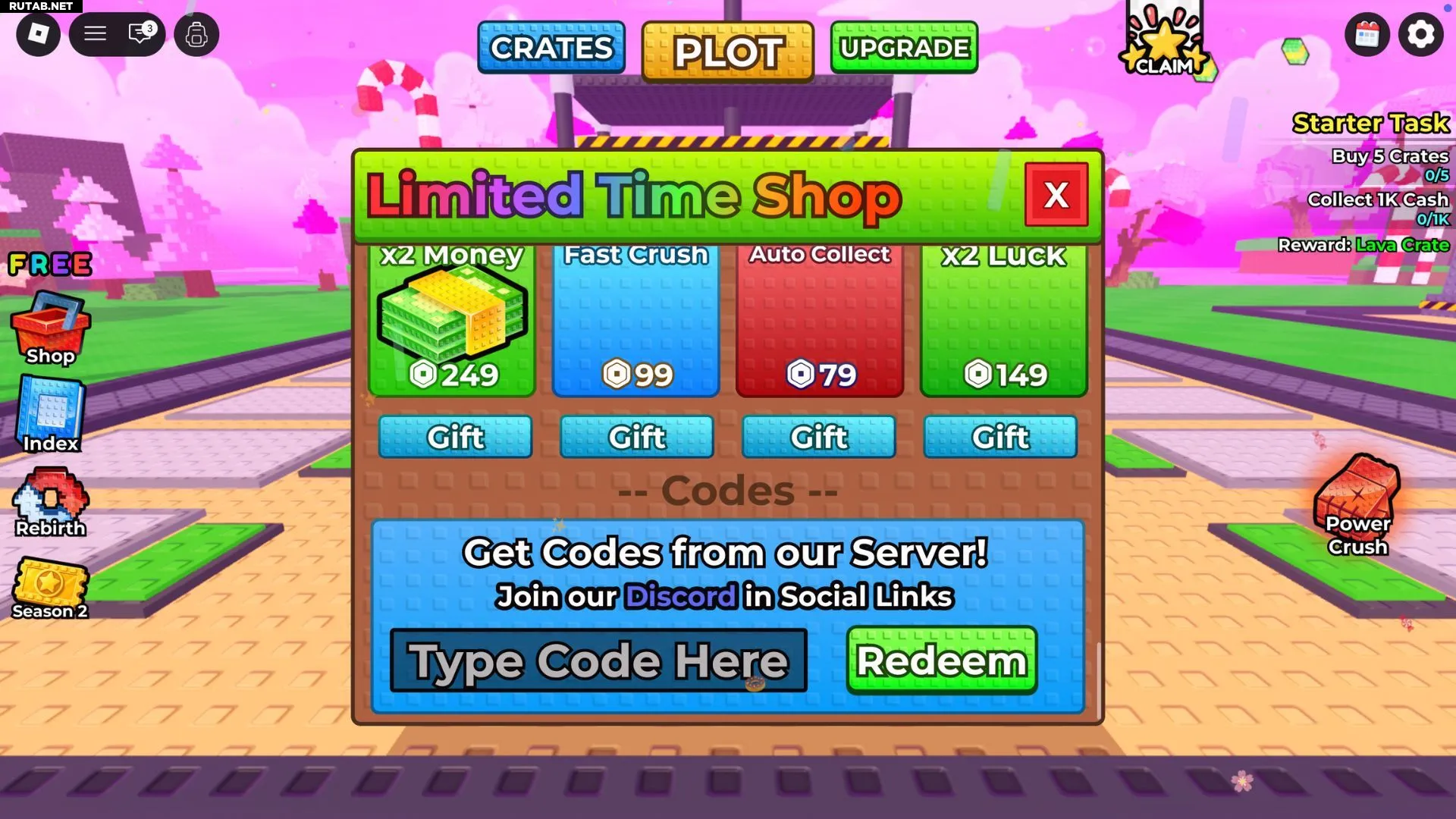 Все коды для Crush for Brainrots