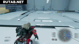 Далее выстрелите одной липкой миной (той, что вы подобрали в секции 1) в край квадрата в центре арены. Немного выждите, пока красный шагоход не подойдёт достаточно близко. Затем быстро наведитесь на мину, взломайте её, применив мульти-взлом и замешательство. Расположение мины всегда одинаковое, так что это будет срабатывать каждый раз: