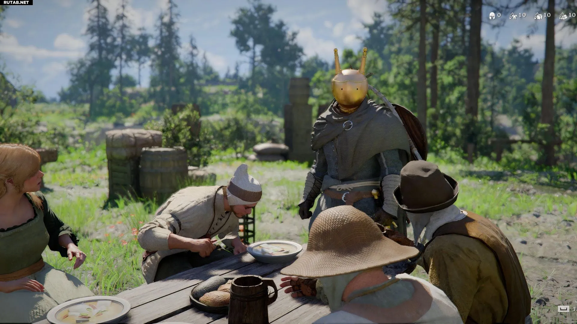 Следующий квест, «Награда за тяжёлый труд», просит вас приготовить еду для лагеря. Блюдо, которое нужно приготовить — Прозрачный бульон. Прежде чем прикасаться к Котлу для готовки, прочитайте рецепт на соседнем столе. Для Прозрачного бульона не требуется много редких ингредиентов, и вы будете готовить его часто в Crimson Desert.