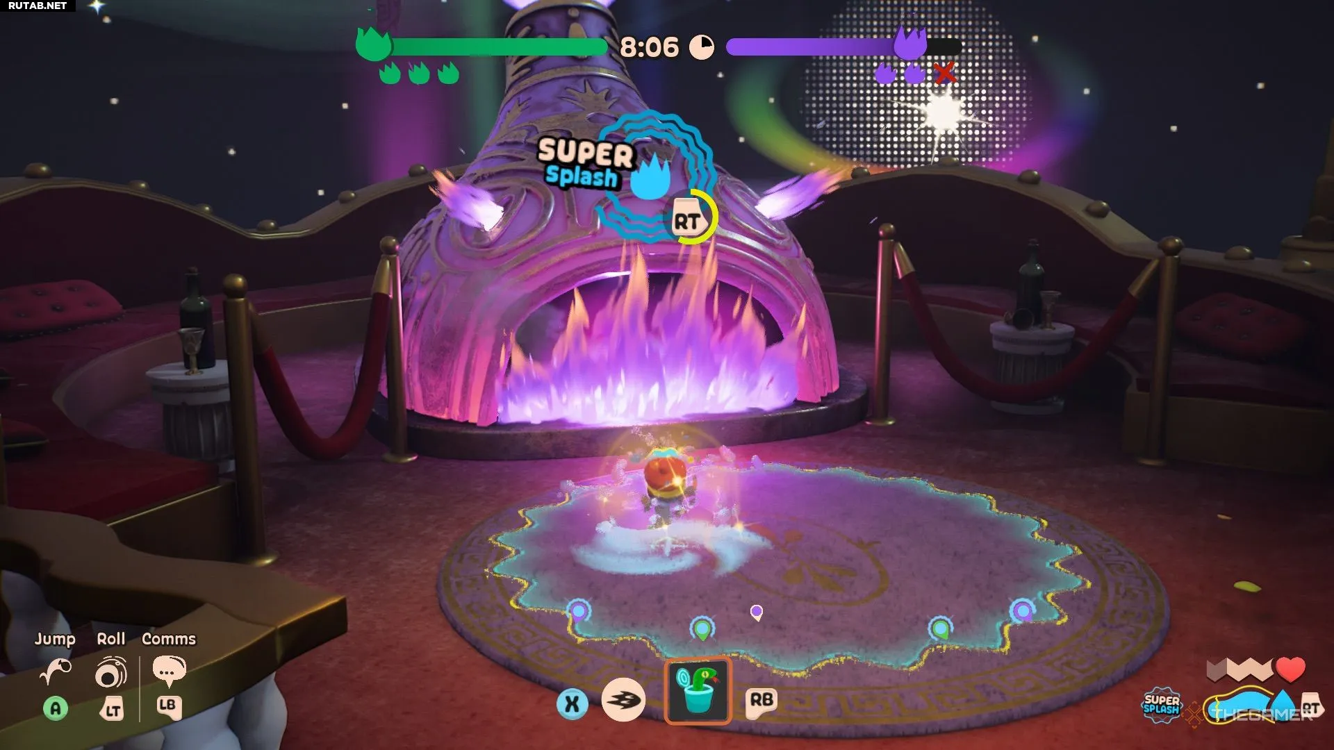 Конечно, идеальная ситуация — залить печь противника полным горшком и нанести «Супер-плеск», но это не всегда возможно. Иногда вы не успеваете наполнить горшок, или вам приходится быстро укатиться от опасности, потеряв часть воды. Или вражеский горшок может врезаться в вас и пролить воду.