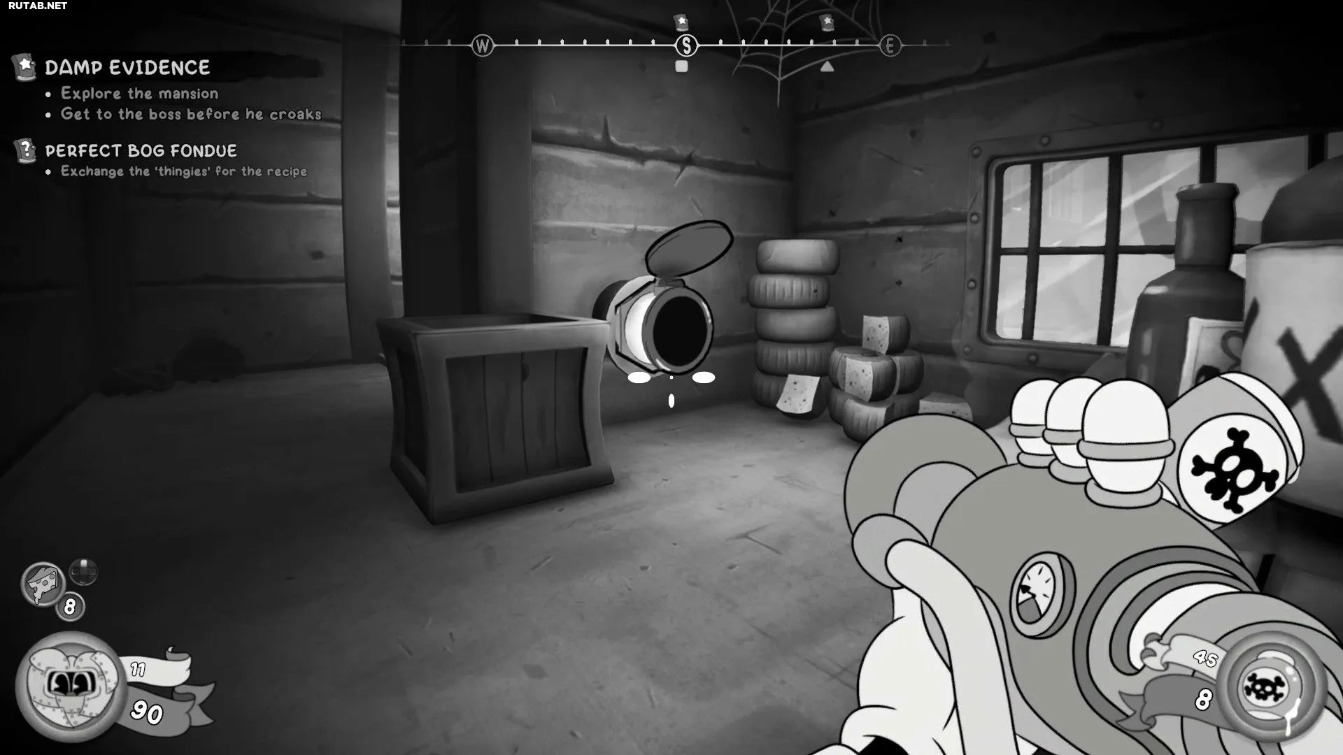 Внутри особняка следуйте по главному пути и взломайте дверь. Продолжайте движение до столовой и посмотрите направо — на стопке сырных головок лежит вторая безделушка. Заберите её, а затем разрушьте «совершенно нормальную стену» в столовой.