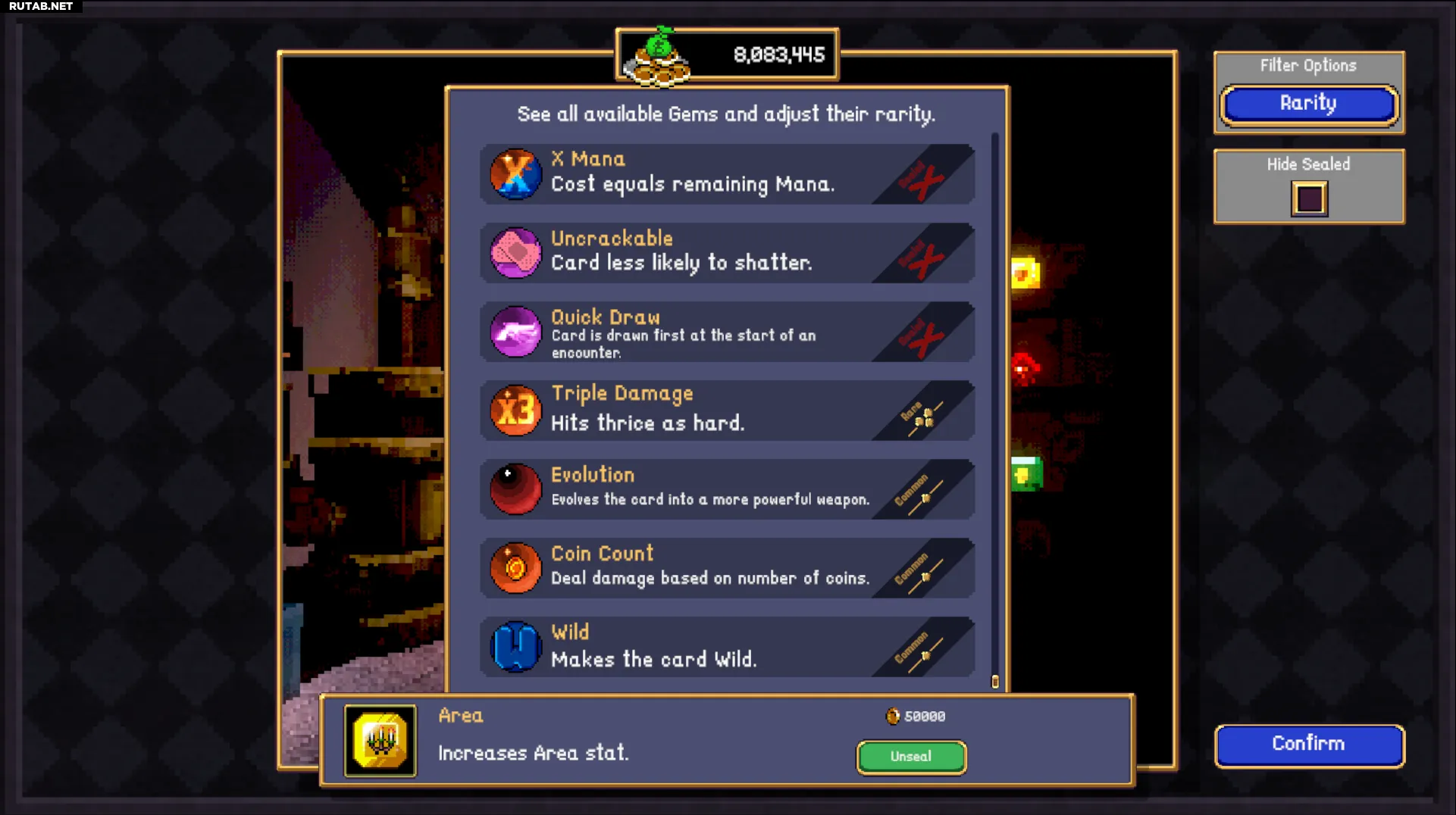 В Ювелире запечатайте все самоцветы, кроме «Эволюции», «Счёта монет» и «Дикой карты». Можете добавить «Тройной урон», чтобы быстрее убивать мобов. Запечатывание всех самоцветов дорого: на старте можно сделать «Счёт монет» и «Дикую карту» обычными и надеяться получить их рано. После первых 5+ миллионов монет вы сможете запечатать всё.