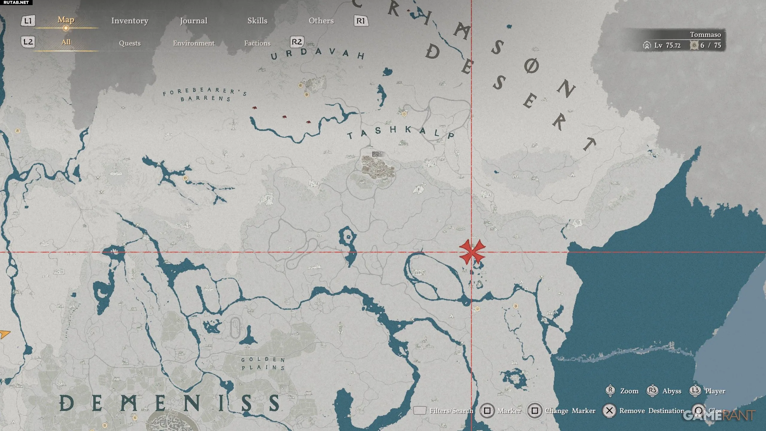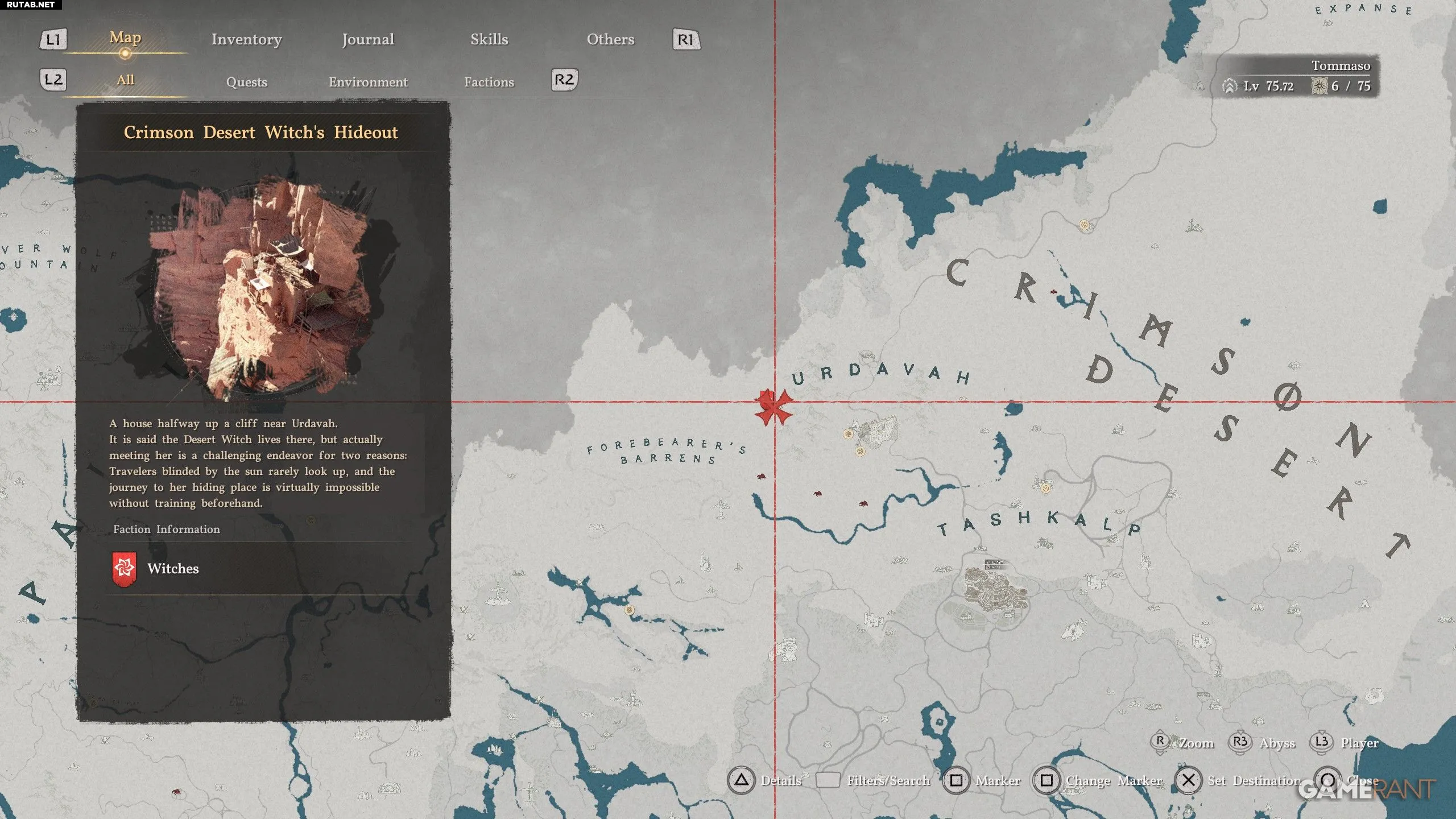 - После того как Аресиль успокоится, её можно найти в Логове ведьмы в Багровых Песках, которое свисает со скалы в Пуповине мира в Ташкалпе (регион Багровые Пески).