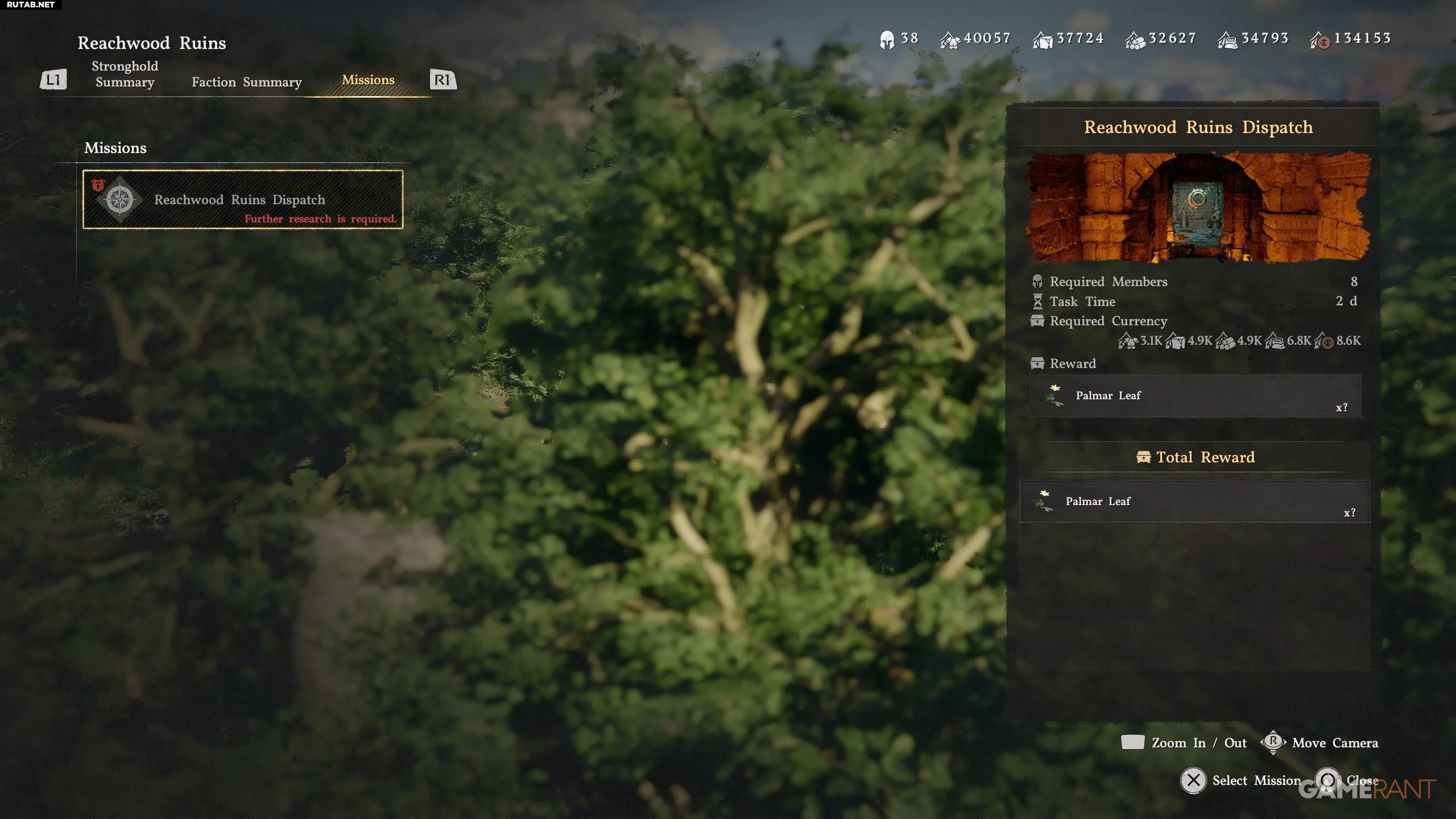 Для начала потребуется выполнить исследовательское задание «План экспедиции к Руинам Ричвуда». Оно, в свою очередь, требует предварительного завершения «Исследования: сближение с природой» и «Исследования листьев пальмары». После этого вы сможете запустить экспедицию к Руинам Ричвуда для добычи следующих материалов: