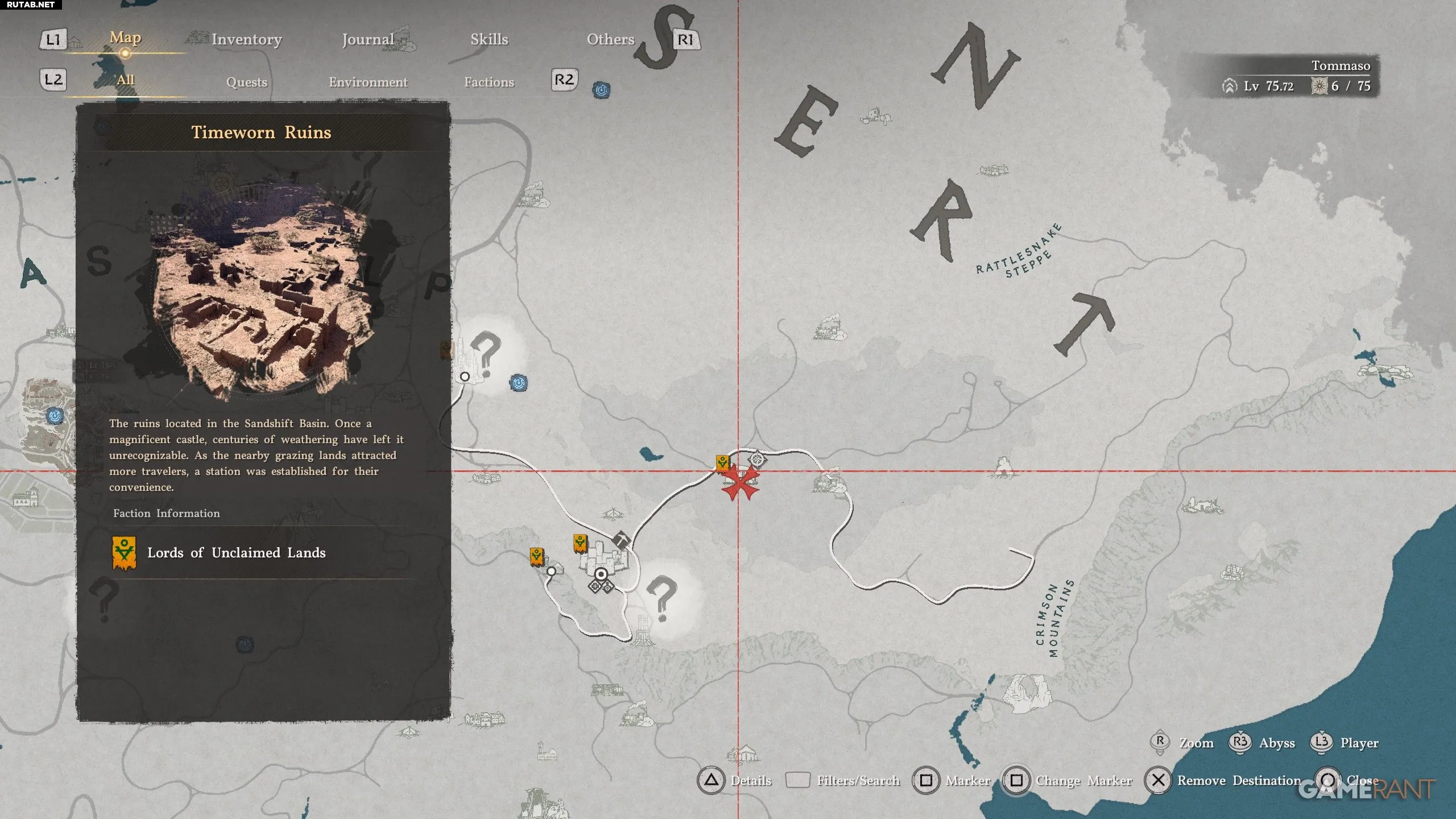 Экспедиция к Руинам Времени открывается после освобождения этой локации, расположенной к югу от второй буквы «е» в названии «Багровые Пески» на карте. Если зона всё ещё заблокирована, вам потребуется выполнить квесты фракции «Рыцарь удачи Багровых Песков» и «Налетчики Багровых песков» на вкладке «Владыки Бесхозных земель» региона Багровые Пески.