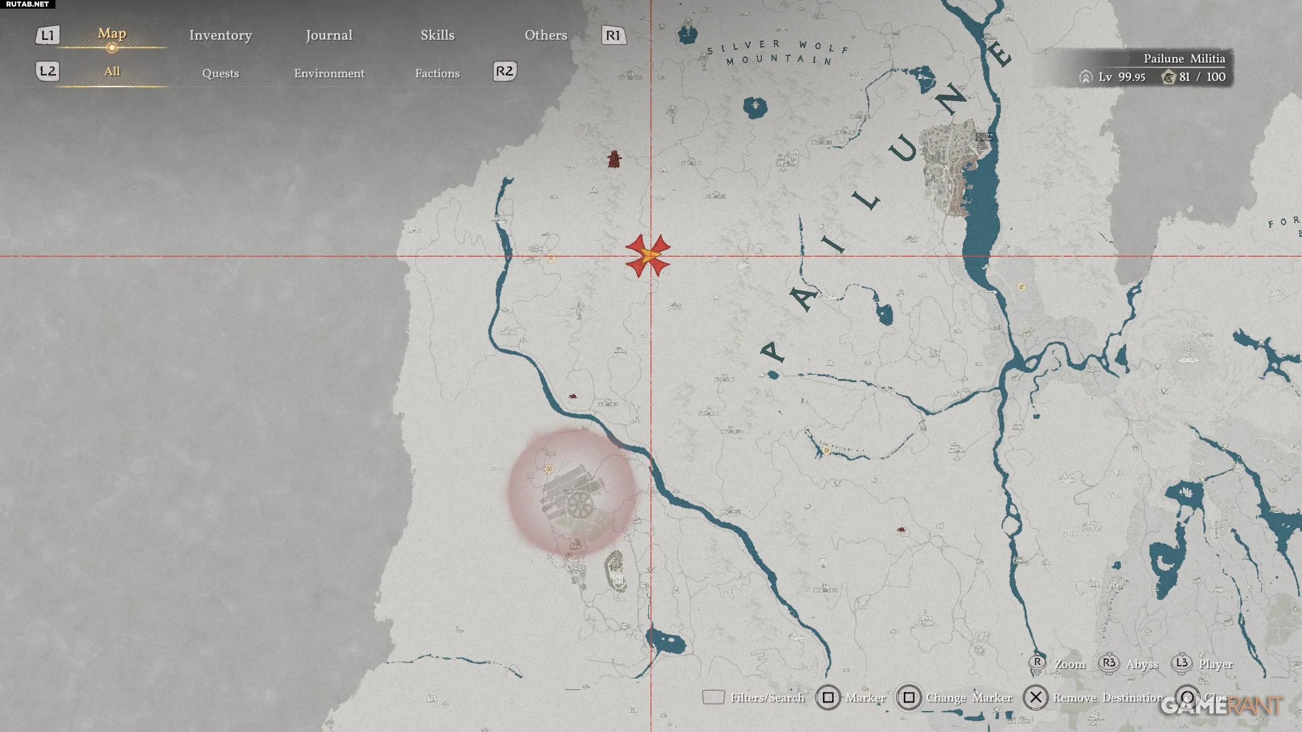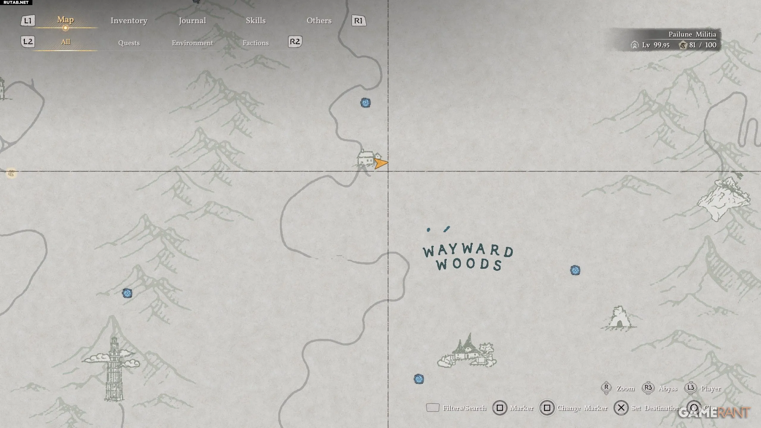 - Это место находится к северу от Леса Бродяг, который расположен сразу к западу от буквы «А» в названии «Пайлун» на карте.