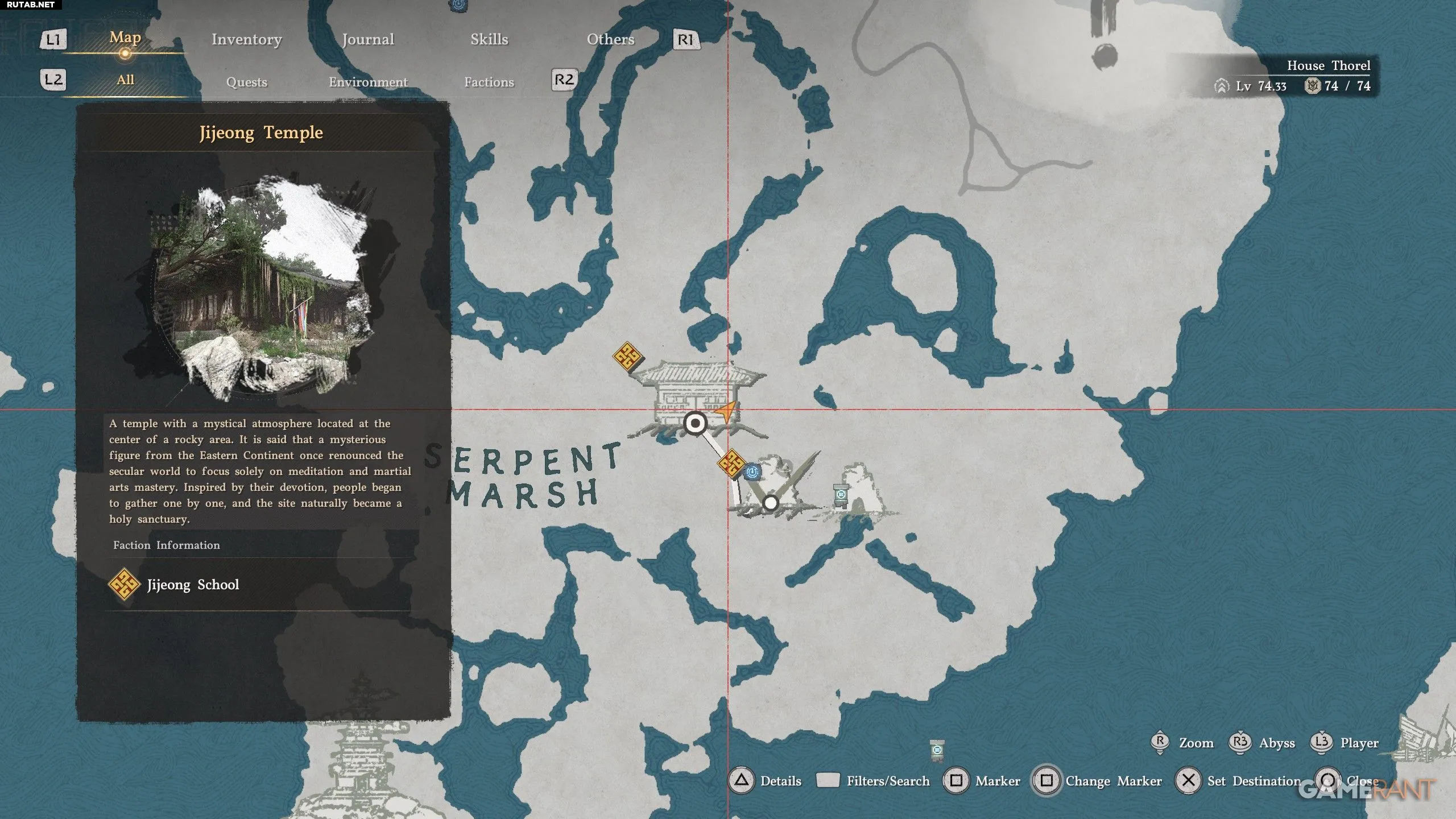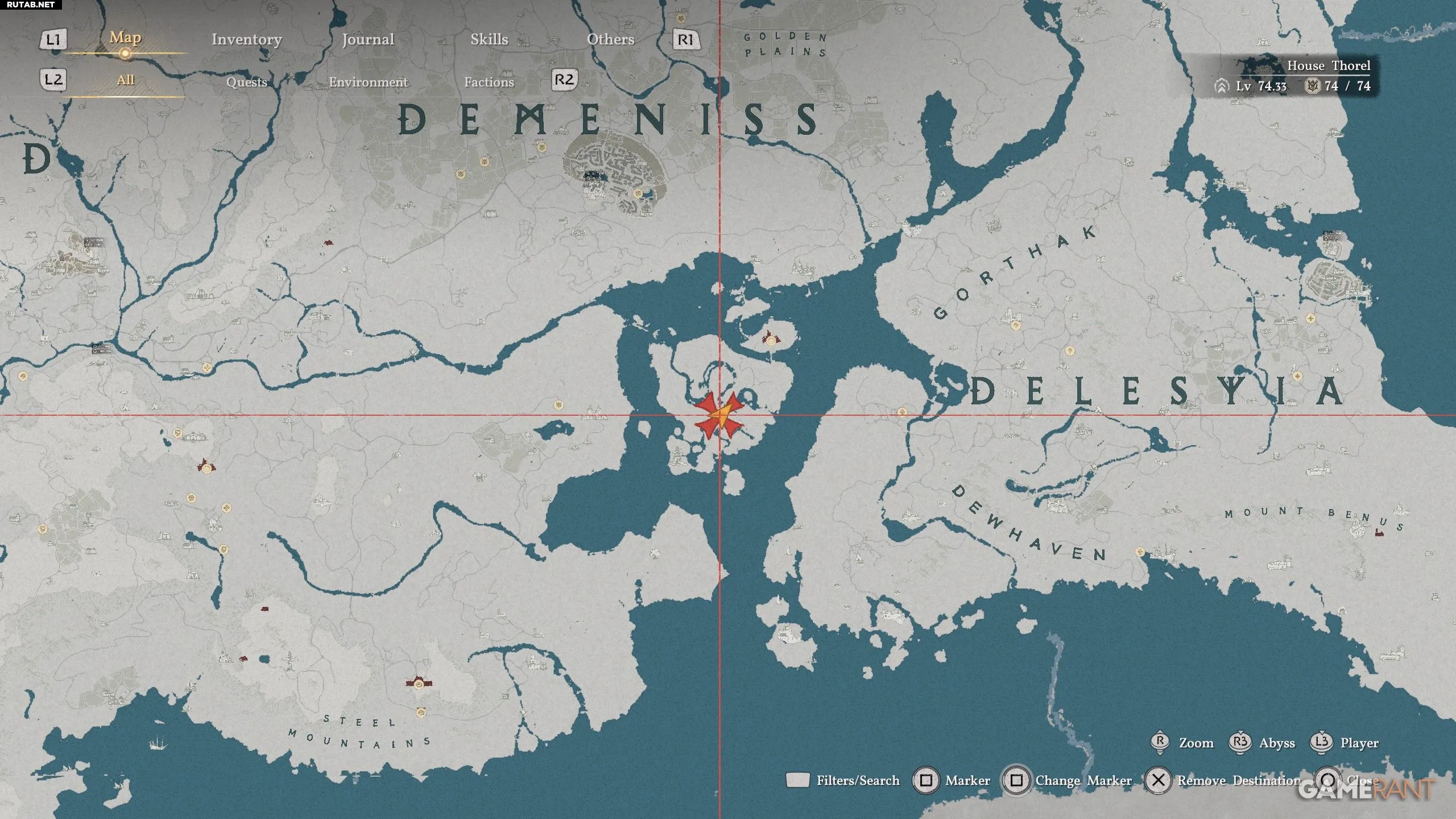 - Добраться до Змеиного болота можно, двигаясь на юг от Деменисса. Точное место отмечено на карте выше.