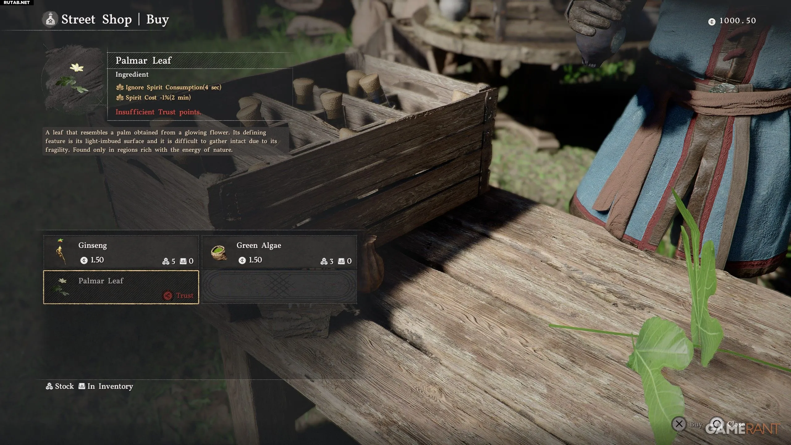 - Лист пальмары можно купить у Лероя, торговца из уличного ларька, расположенного в замке Пайлун.