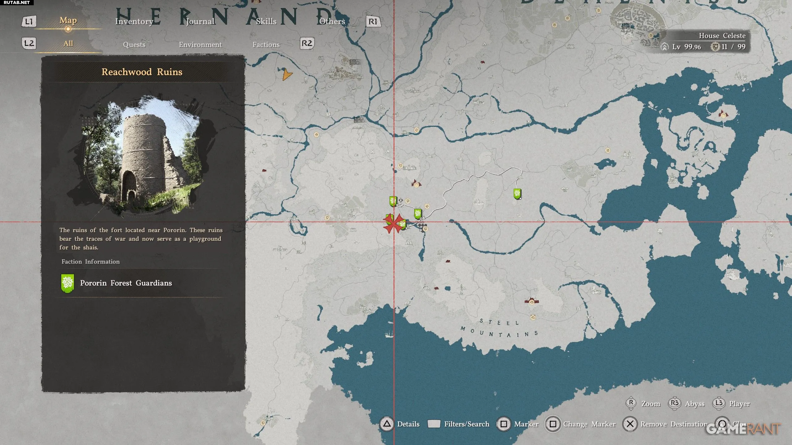 - Руины Ричвуда находятся к востоку от деревни Порорин (отмечены на карте выше).