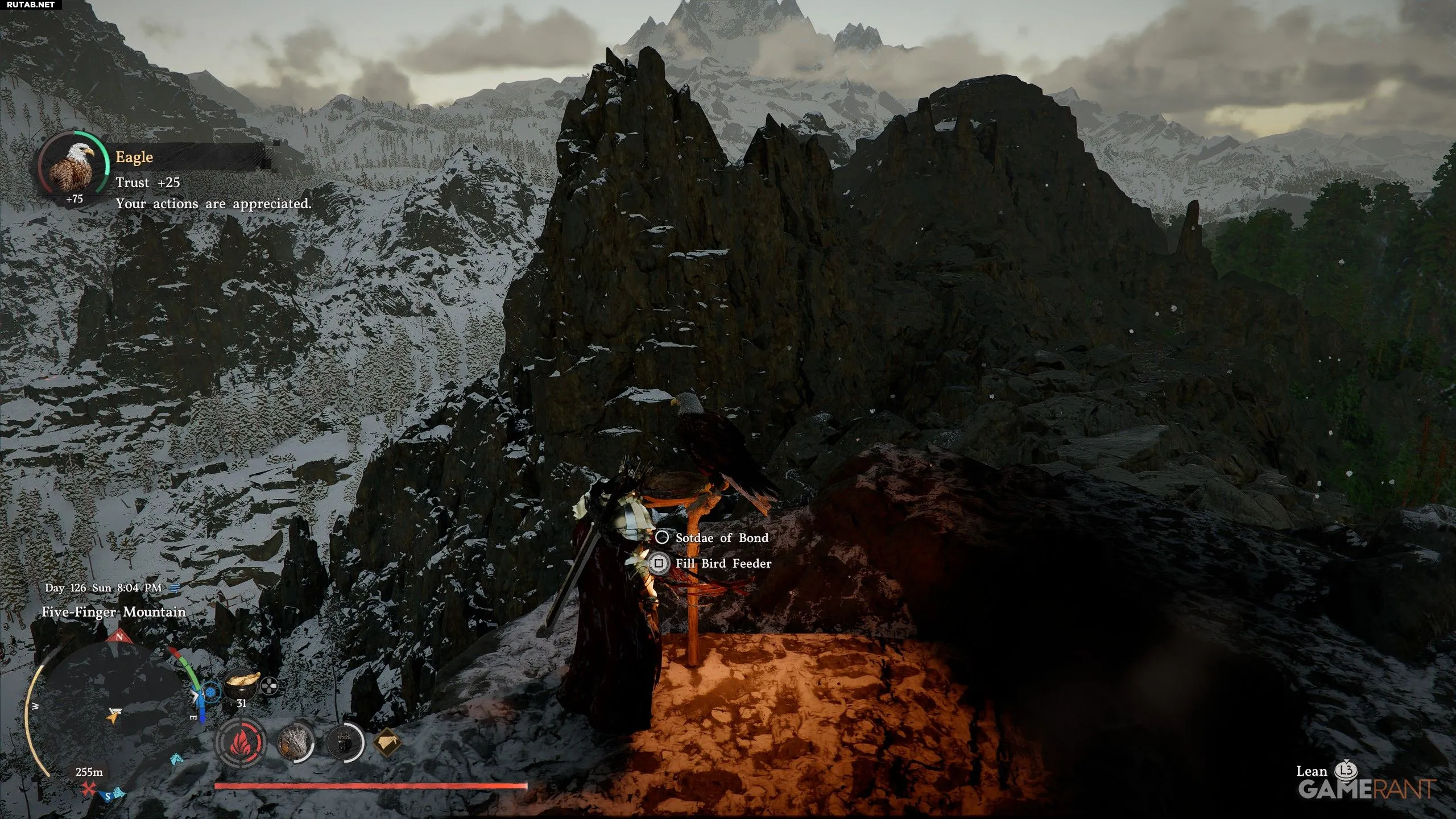 - Когда Белый ястреб съест достаточно, уровень доверия достигнет +100, и вы сможете подойти к нему и нажать Квадрат/X, чтобы сделать его питомцем.
