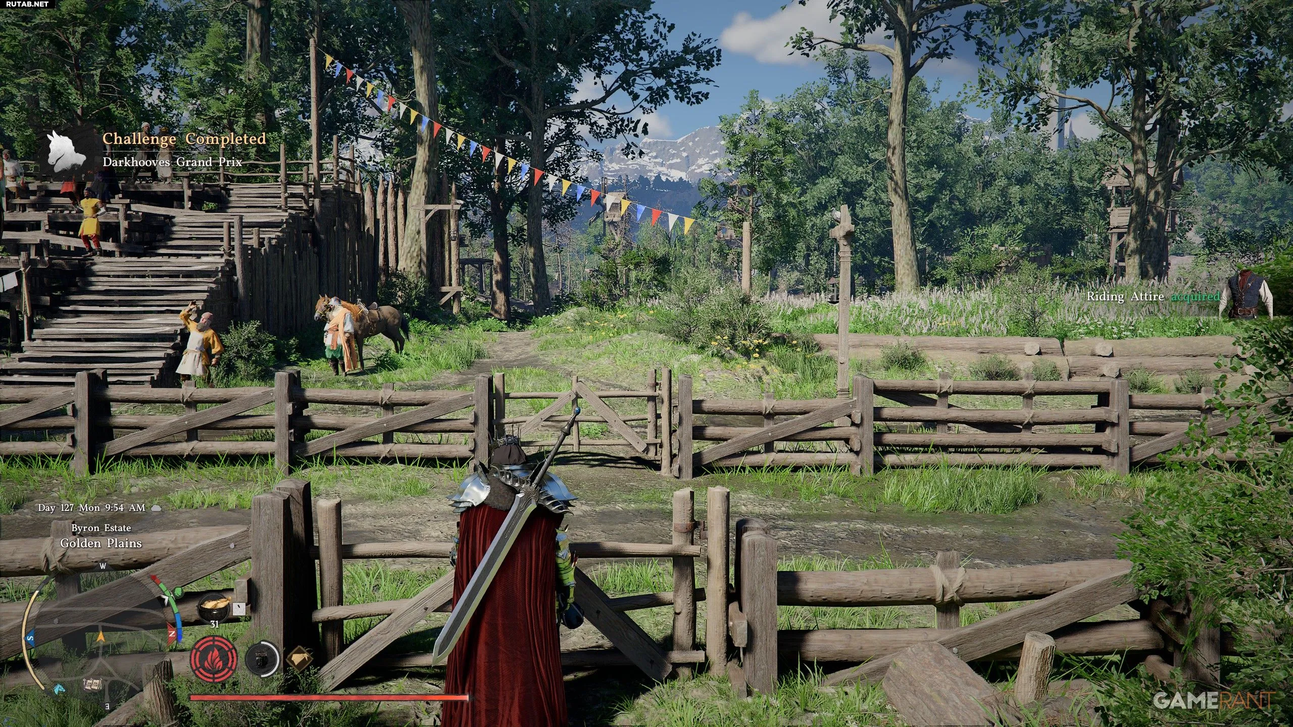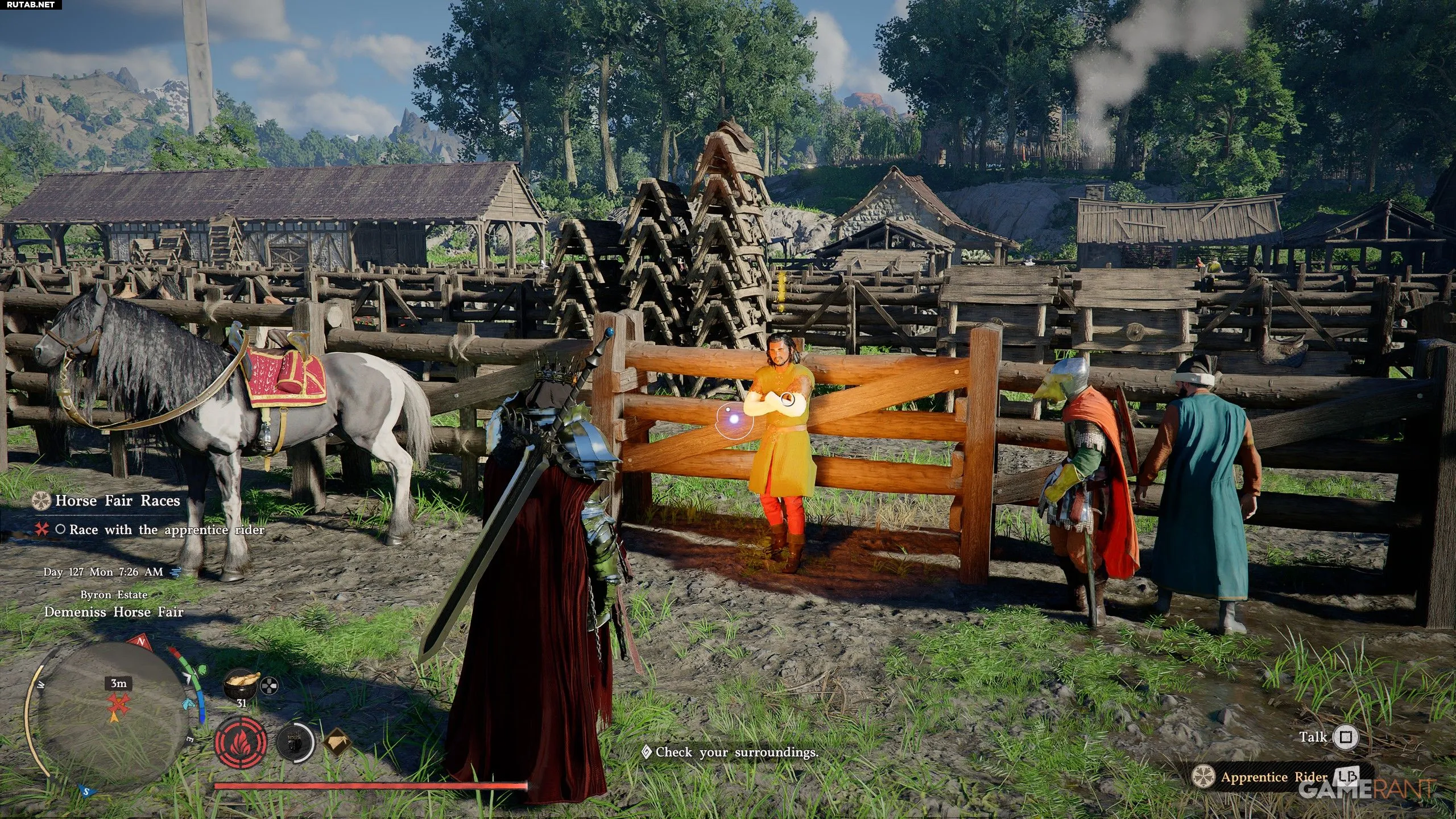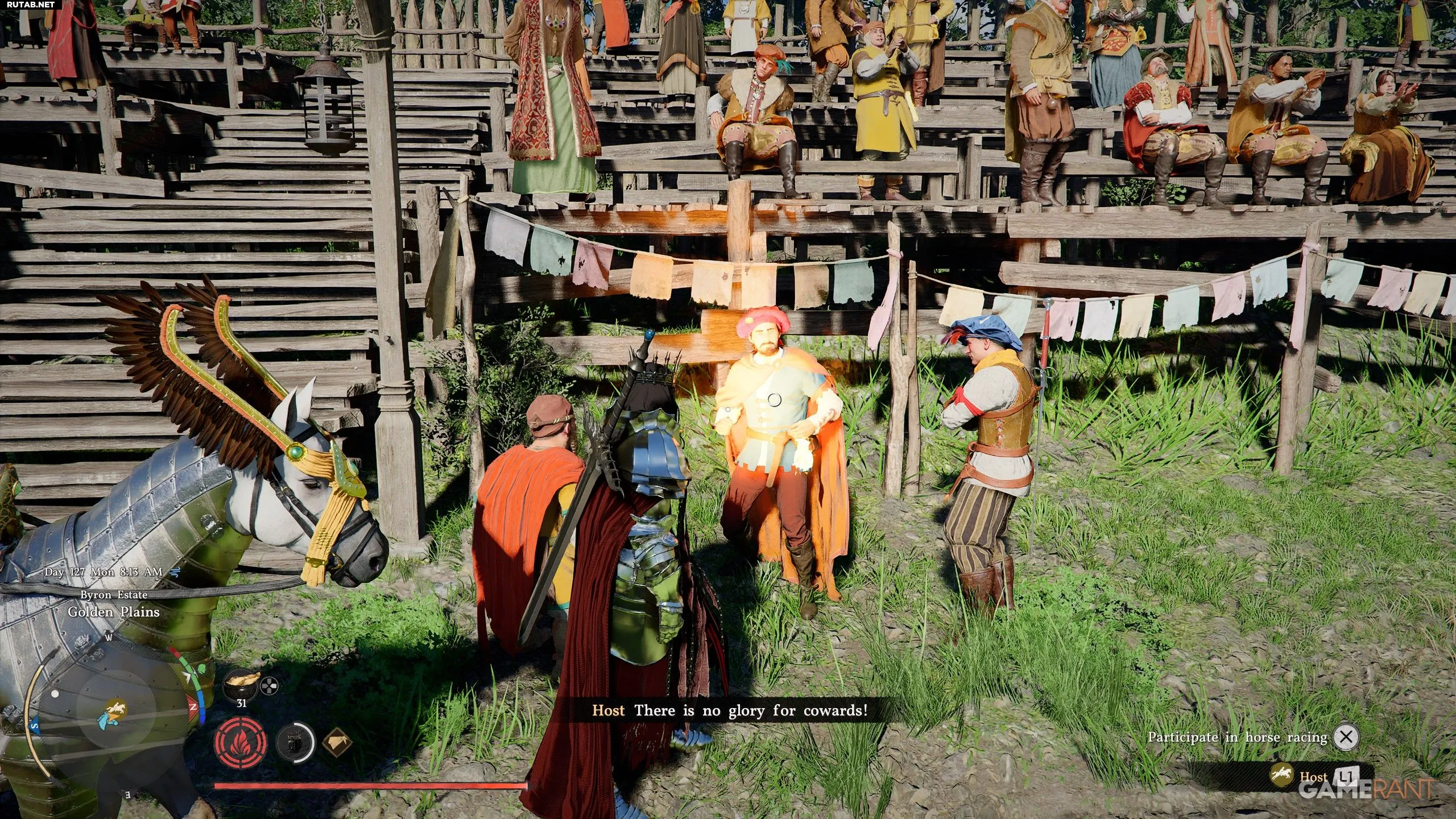 - Чтобы начать Гран-при, поговорите с ведущим и выберите «Участвовать в скачках».