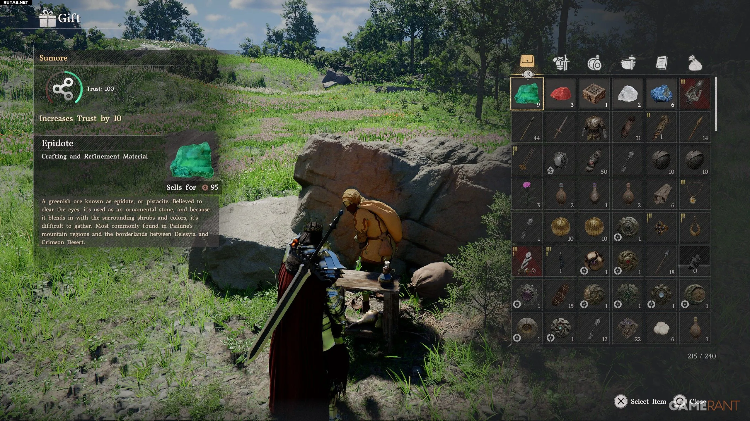- Чтобы получить плащ, нужно сначала достичь +100 доверия с Санмором, используя x10 р. граната (или эпиодта, алмазы и азурит).