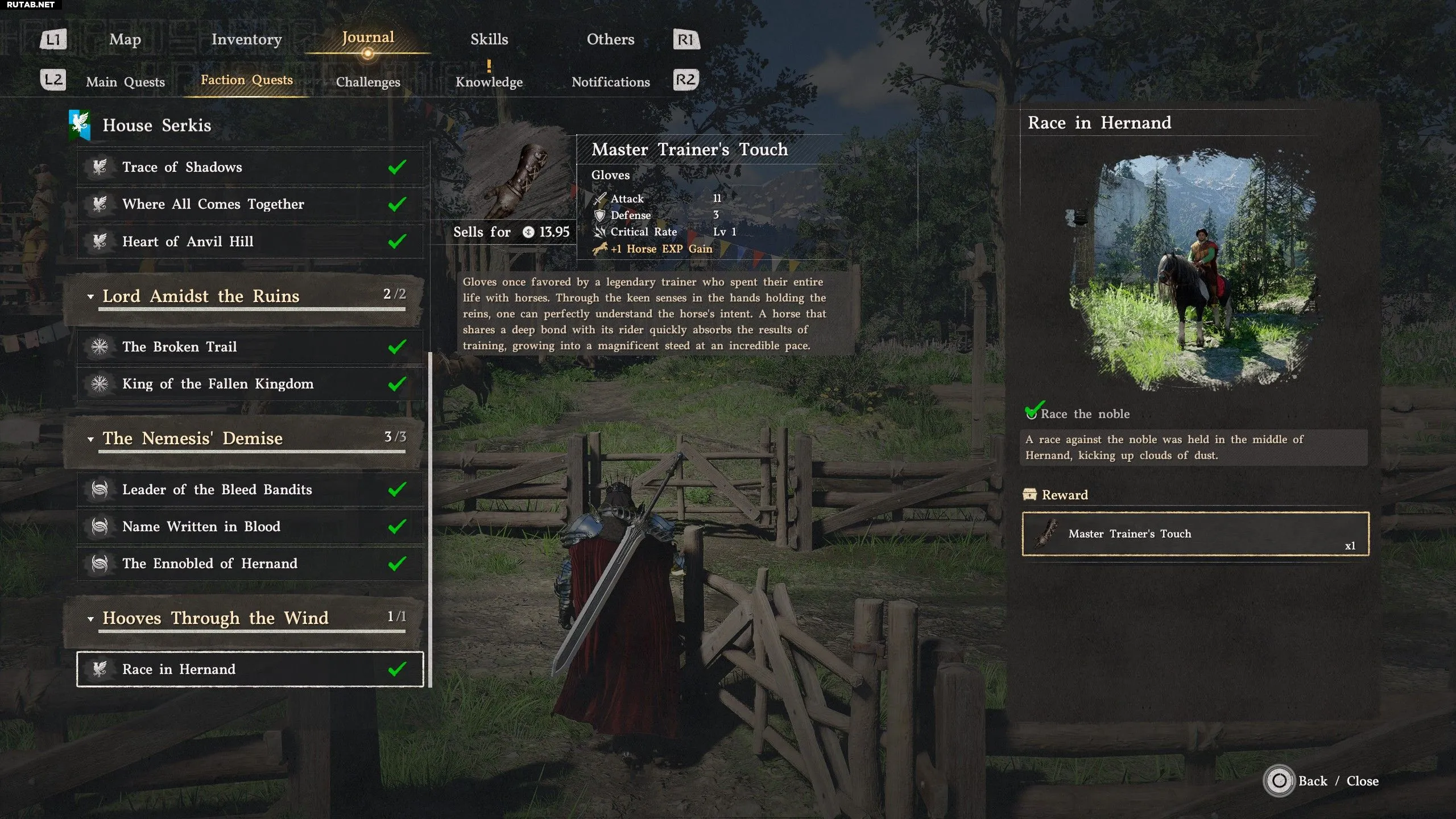 Экипировку для верховой езды нельзя улучшить, и в неё нельзя вставить снаряжение Бездны, так что это не лучшая броня в игре. Тем не менее, это отличный набор для тех, кто хочет быстрее развивать отношения с лошадью.