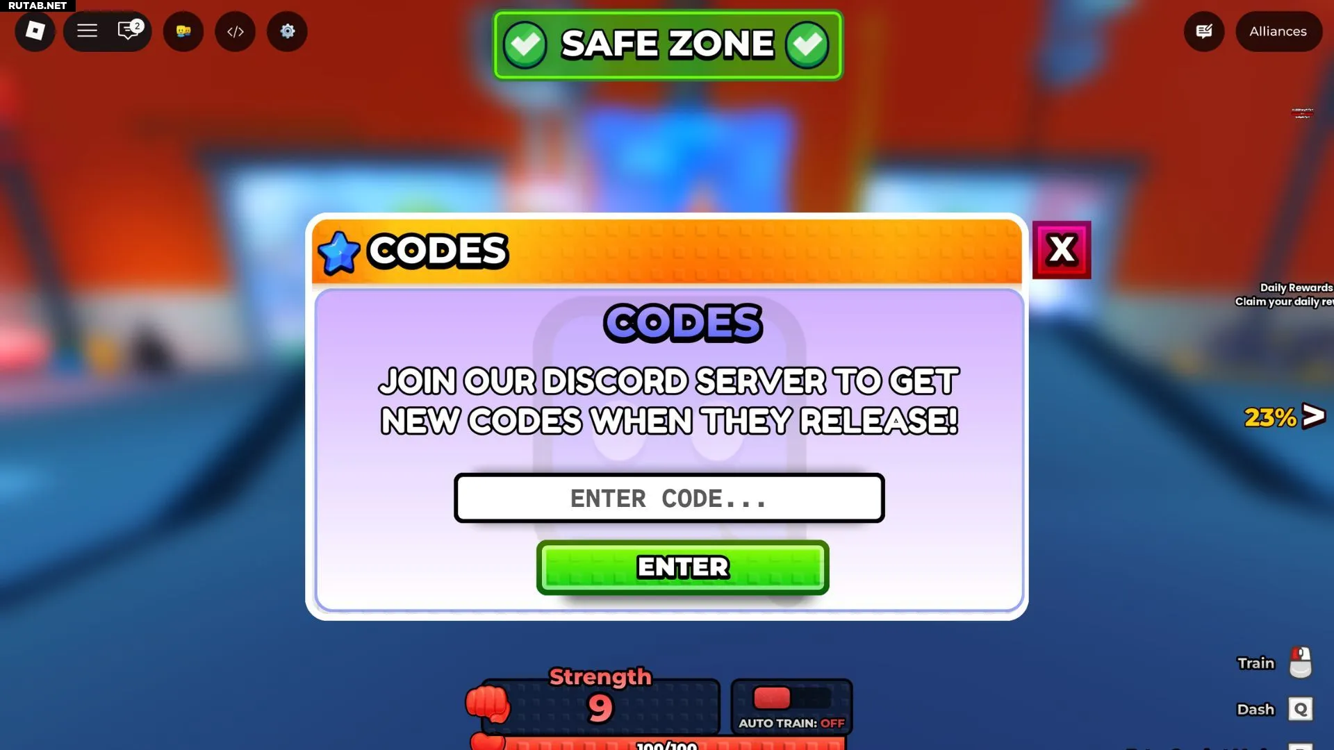 - Оказавшись в игре, найдите кнопку «Codes» в левом верхнем углу.