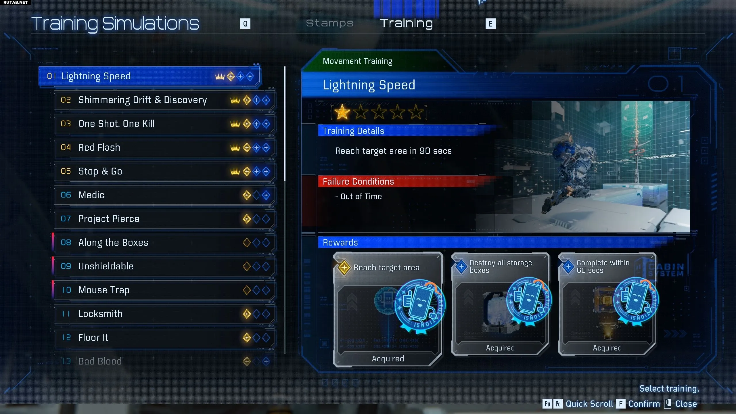 Вот полный список тренировочных симуляций, их основные и дополнительные цели, а также награды за их выполнение.
