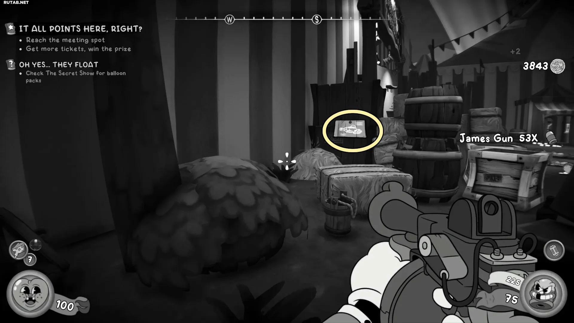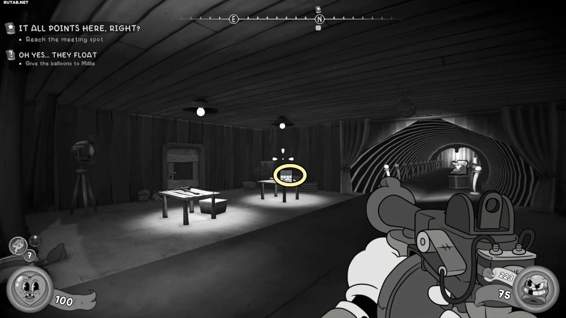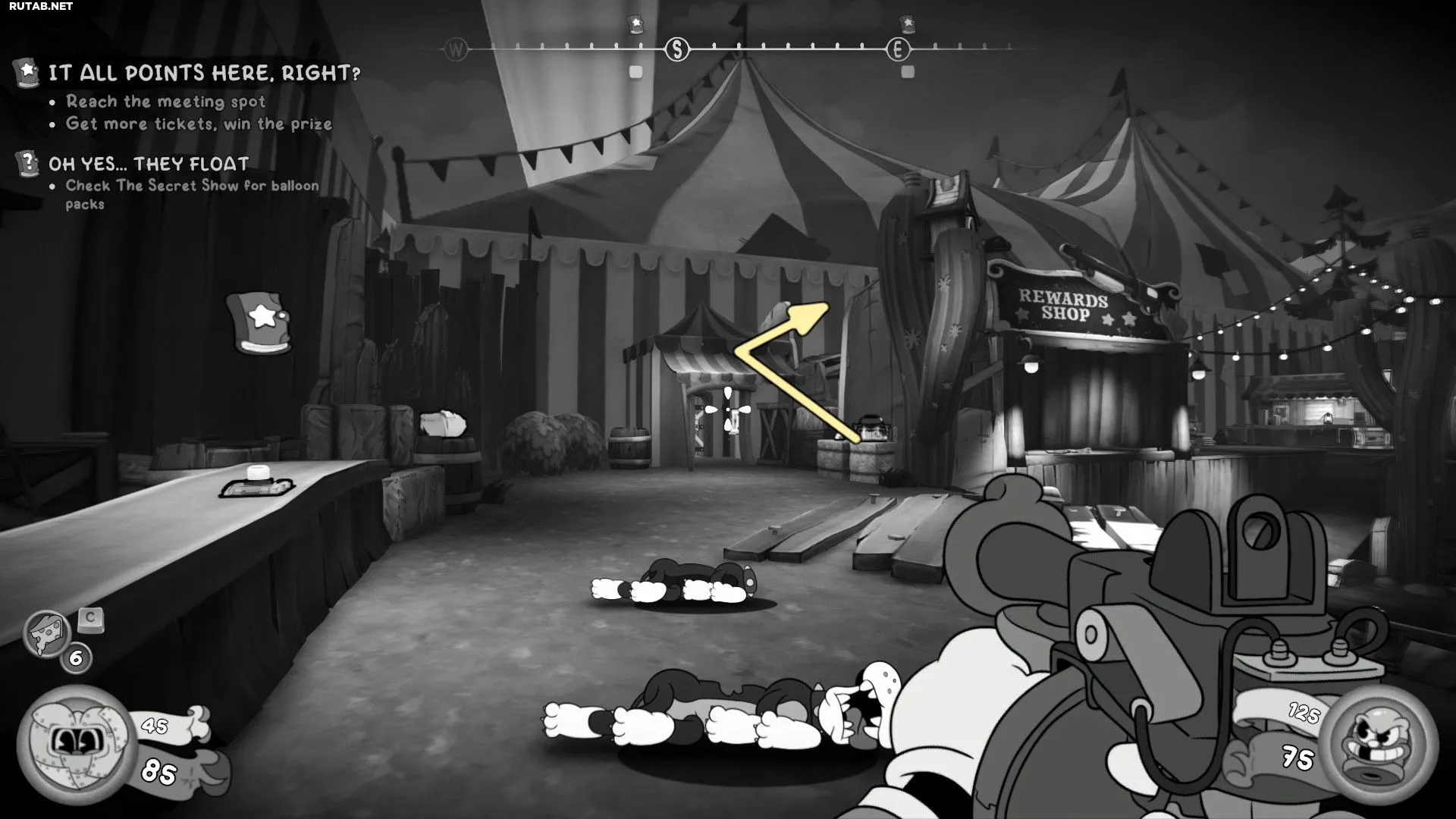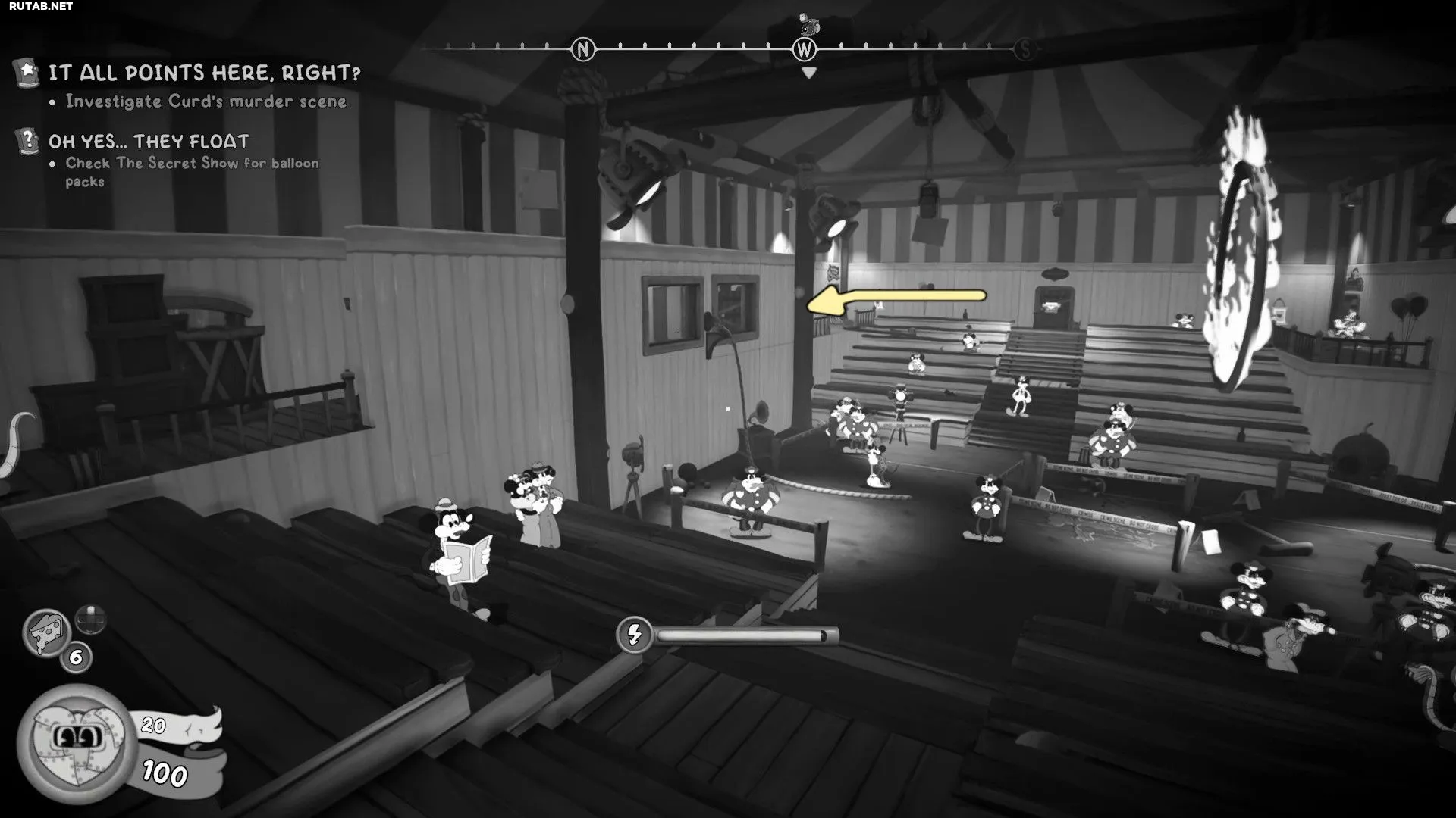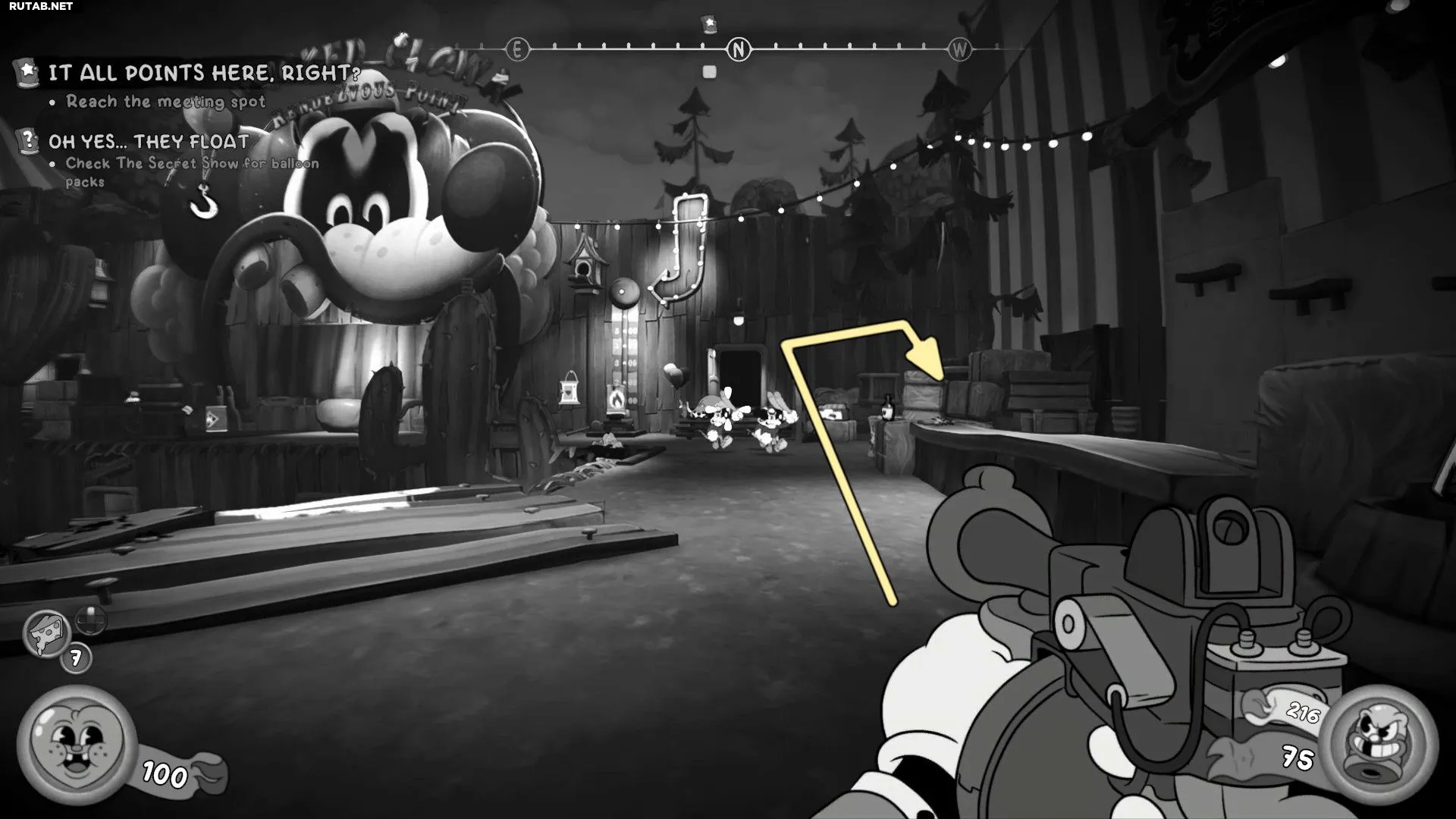 Вернитесь в Магазин наград и взаимодействуйте с Острым перцем, чтобы открыть занавес. Следуйте по пути, чтобы войти в пасть Злого Клоуна, и возьмите Схему из ящика слева, прежде чем спуститься в туннель.