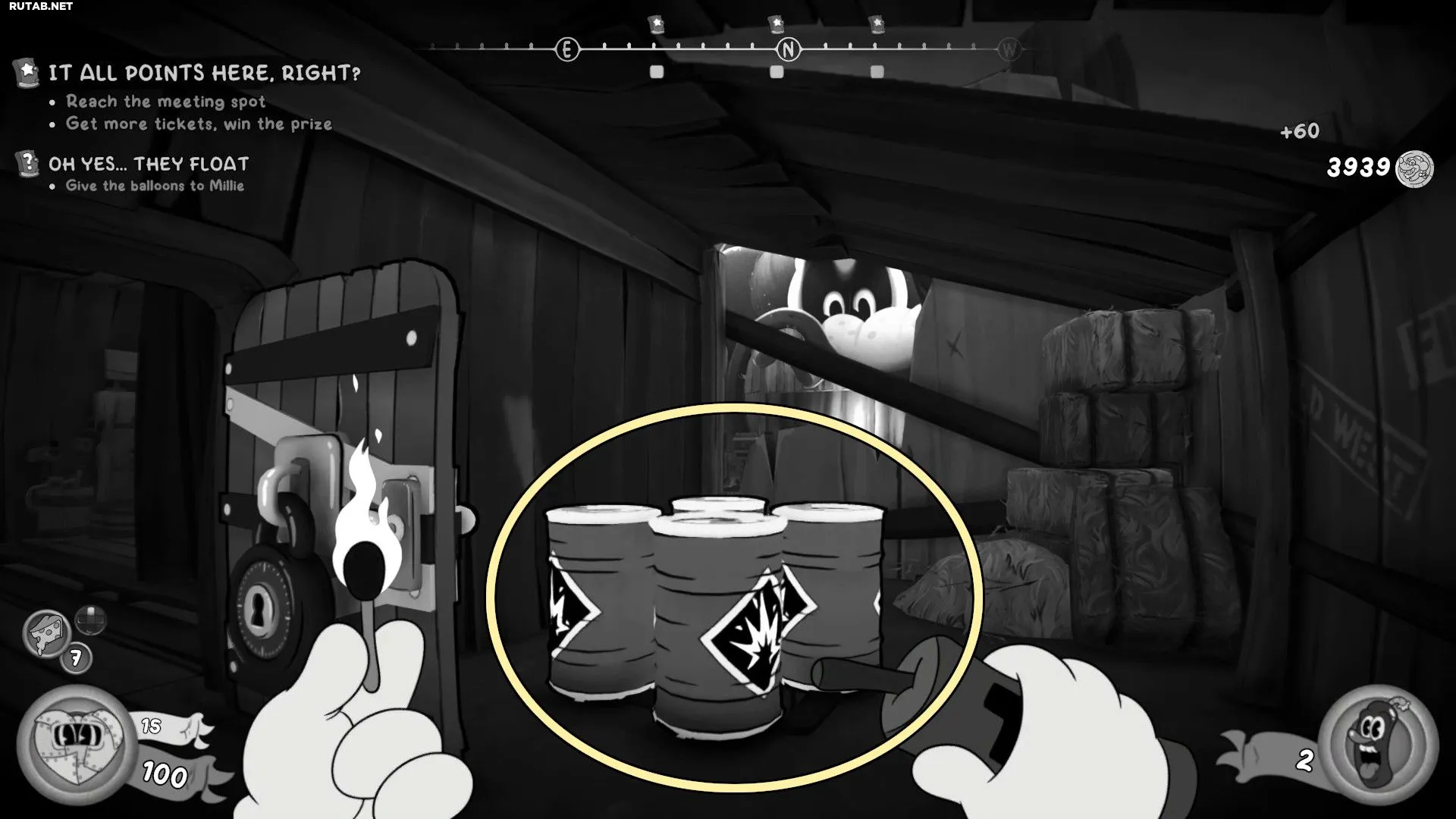 Используйте два билета в билетном автомате парка «Высокий полдень», чтобы войти в магазин наград. Взломайте замок, чтобы пробраться в следующую комнату, и взорвите бочки, чтобы расчистить вентиляцию, ведущую к Бейсбольной карточке.