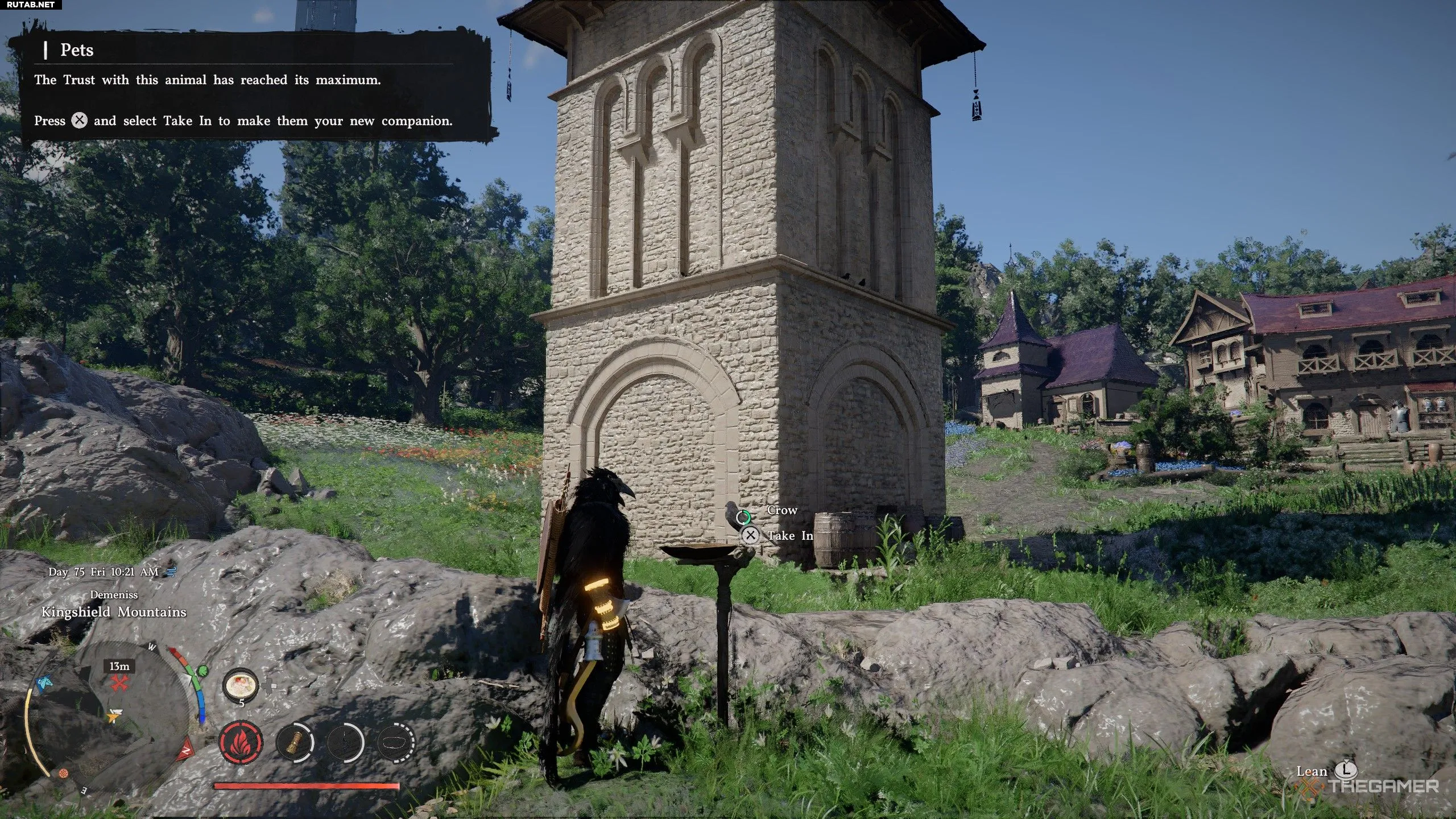 Как только вы максимально повысите доверие нужной птицы, у вас появится опция «Забрать». Выберите её, чтобы официально добавить эту птицу в свой Состав питомцев. Теперь вы можете открыть инвентарь и выбрать, какую птицу использовать, или просто переименовать их. Как и другие животные, птицы будут собирать любые Материалы с трупов или когда вы добываете ресурсы. Эти животные не дают преимуществ в бою, как бы круто ни было сражаться бок о бок с орлом.