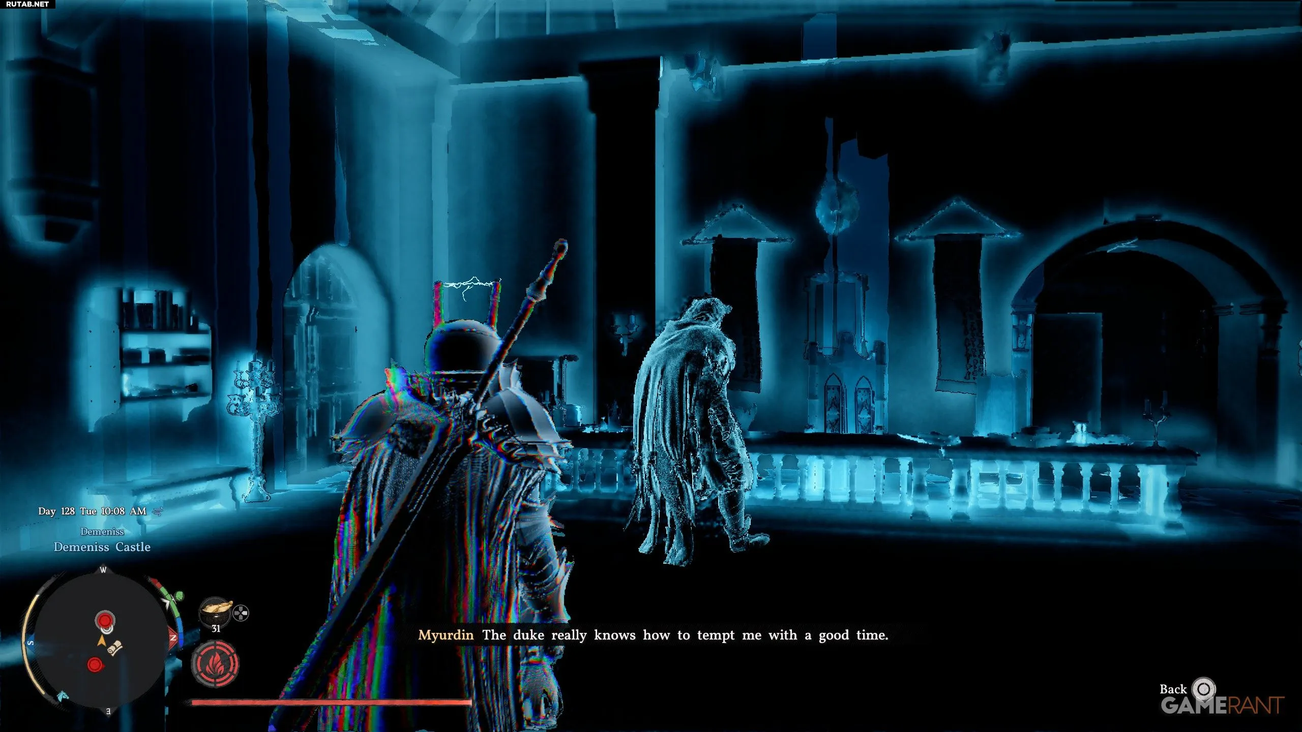 - Последняя дворянка стоит в юго-западном углу, справа от трона. Прослушивание ее беседы даст знание «Исчезнувшая графиня Азериан».