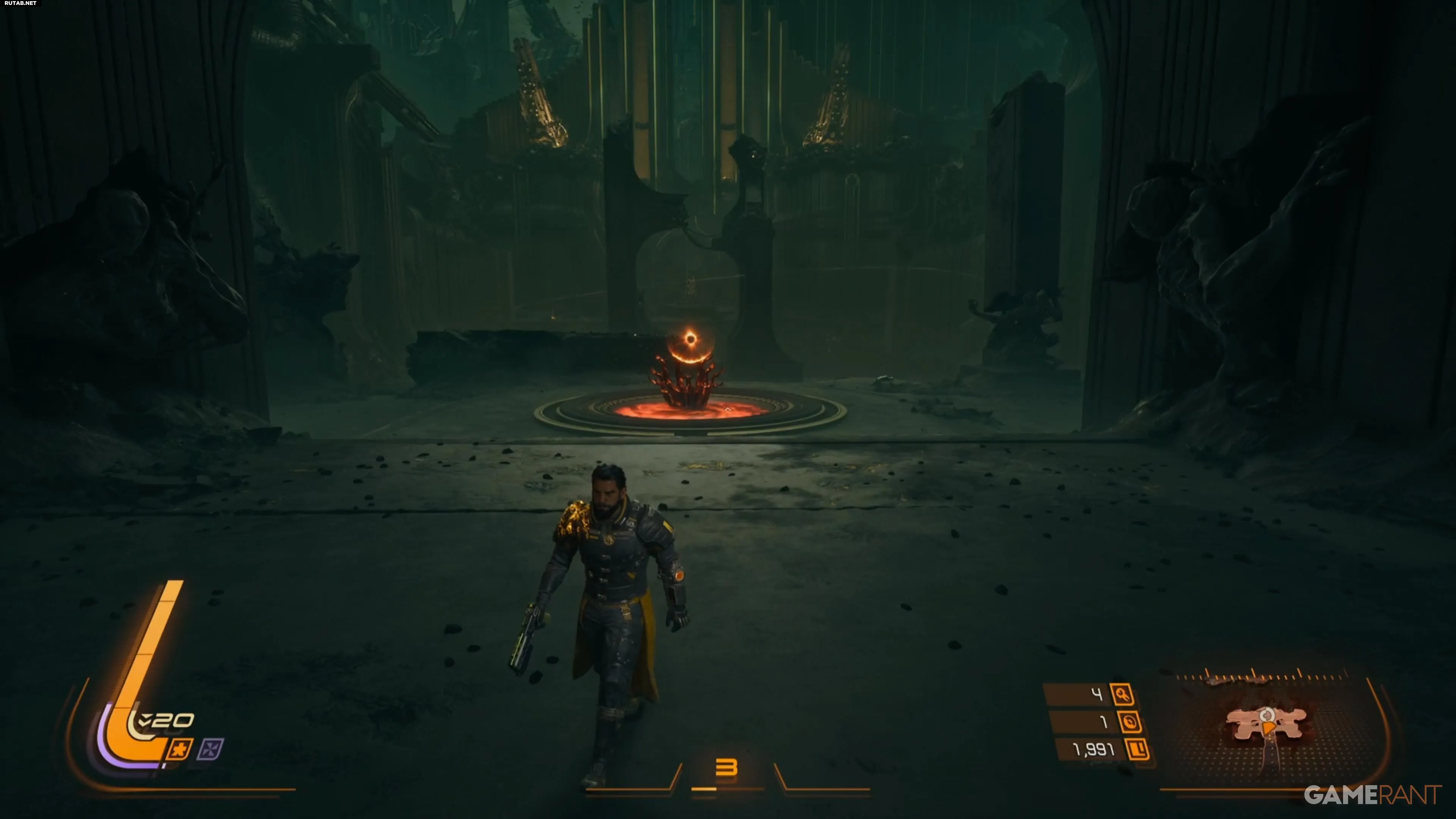 После победы над боссом и завершения нескольких сюжетных сегментов в Проходе, вы сможете с помощью Мирового диска переместиться ко входу в следующий биом — Осквернённую крепость. Помимо Сигил почести, которые вы начнёте находить в этом биоме, после зачистки нескольких комнат вы заметите устройство Эклипса.