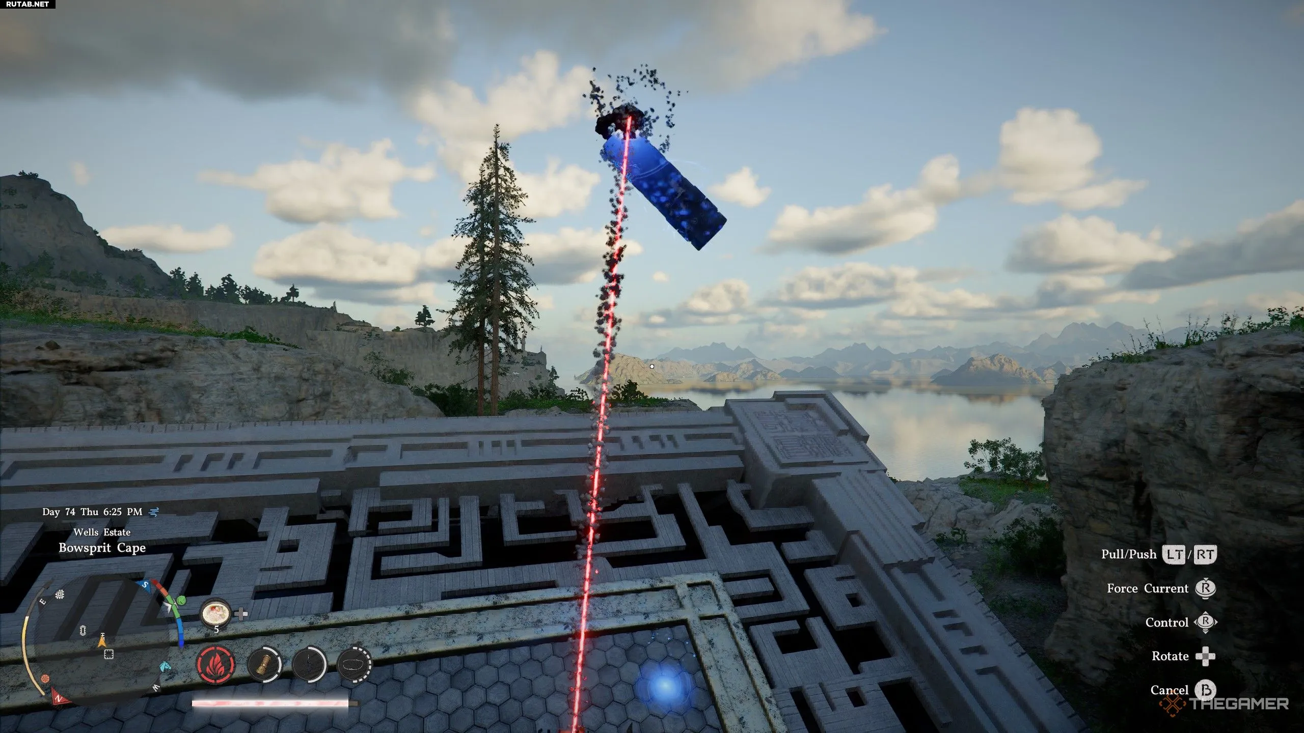 Чтобы добраться до этого ядра, вскарабкайтесь на скалу рядом с лифтом, а затем совершите тройной прыжок. Набрав достаточную высоту, активируйте планирование и летите к парящему ядру. Когда приблизитесь, используйте Силы аксиомы, чтобы захватить ядро, и медленно спускайтесь, таща его к лифту.