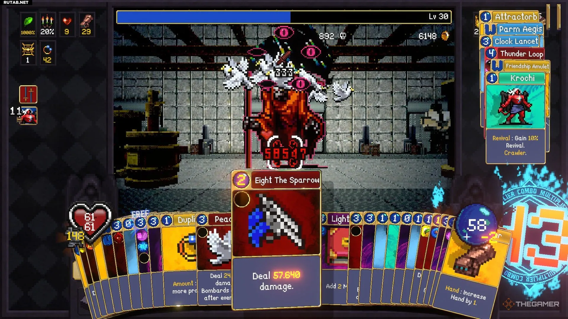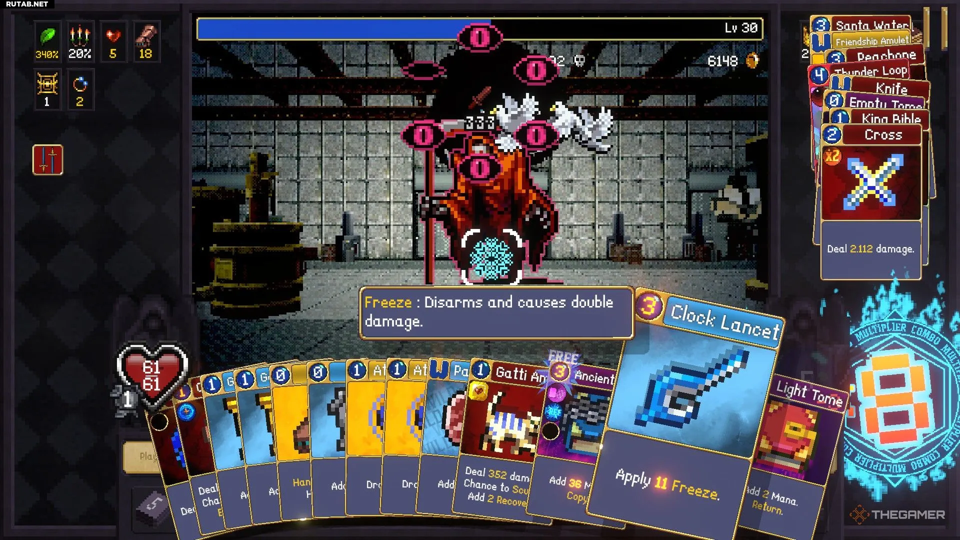 Чтобы Clock Lancet всегда был у вас на руке, вам нужно либо увеличить параметр «Рука» в забеге, либо иметь Bracer в руке, одну или несколько карт Draw и, конечно, пару Томов, дающих ману для его использования.