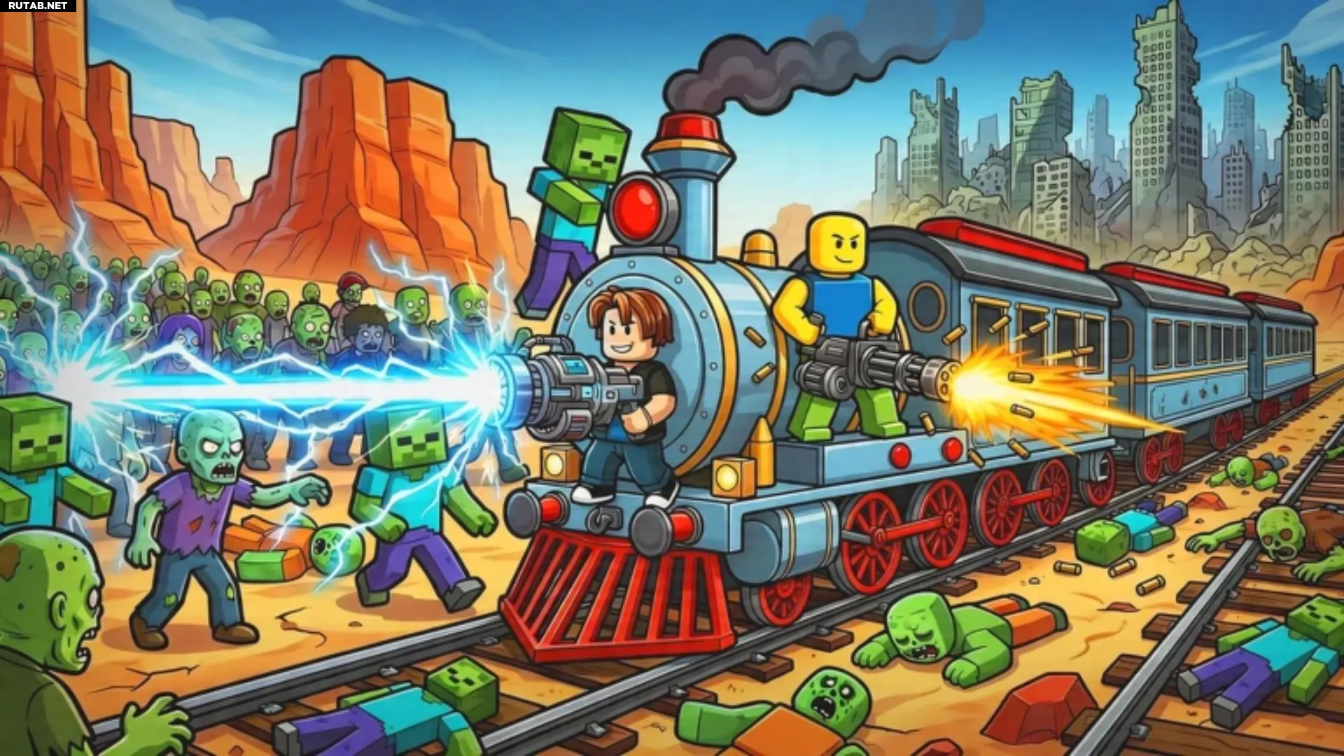 Escape Zombies Railway — это увлекательная игра в Roblox, где вы и ваши друзья объединяетесь, чтобы сражаться с полчищами зомби, мчась на скоростном поезде. Этот динамичный экшен особенно нравится тем, кто любит командные игры на выживание с поездами и зомби.