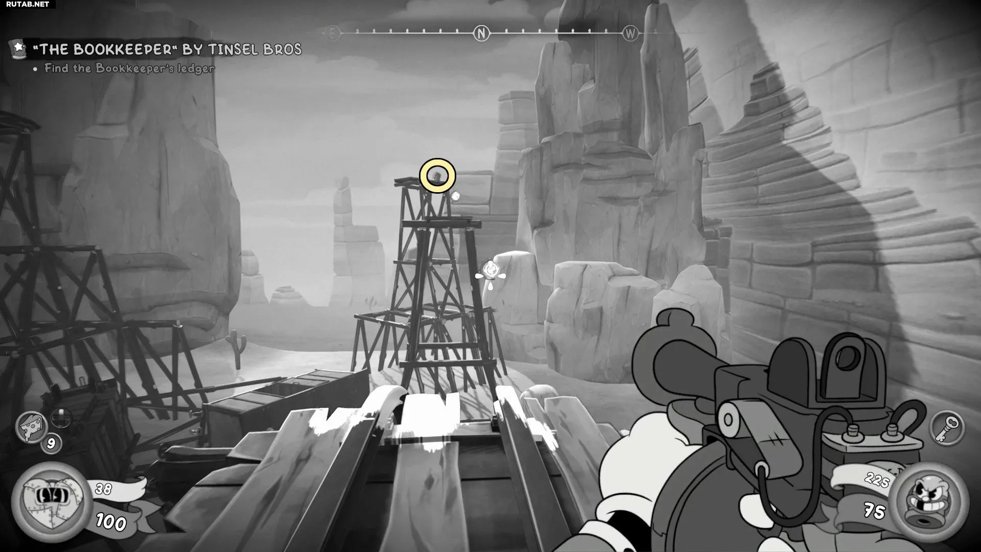 Вернитесь к сломанному рельсу, откуда вы начинали путь к сейфу, и следуйте по нему в другую сторону, чтобы попасть в Шахты. Двигайтесь по основному пути, пока не дойдёте до «совершенно обычной стены». Используйте точки для Хвоста-Крюка в комнате за ней, чтобы забраться наверх. Нажмите на переключатель и одолейте появившихся врагов. Затем перейдите по опустившемуся мосту, чтобы продолжить.
