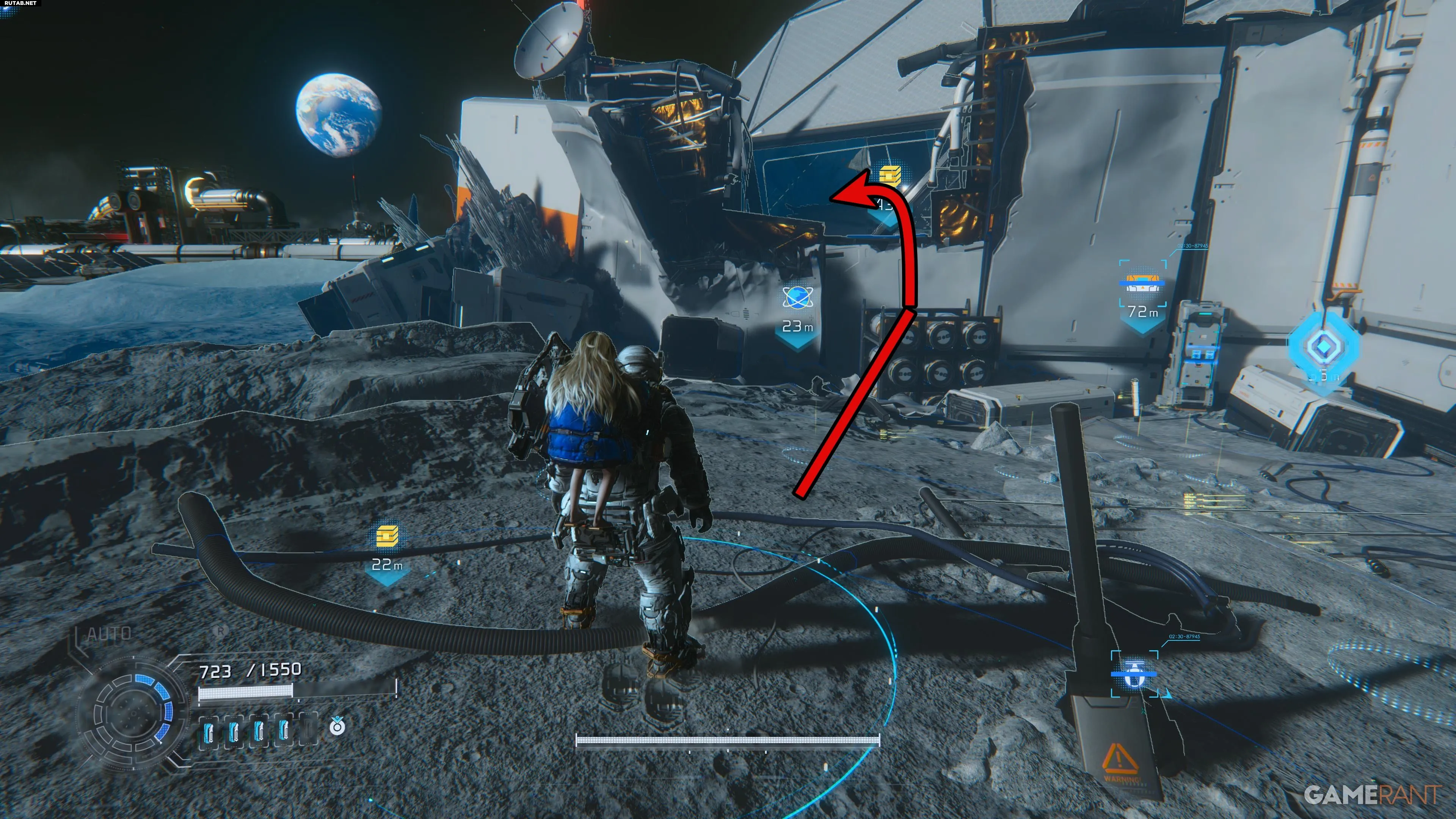 Сейф находится на третьей платформе, выступающей из лунного скального обрыва.