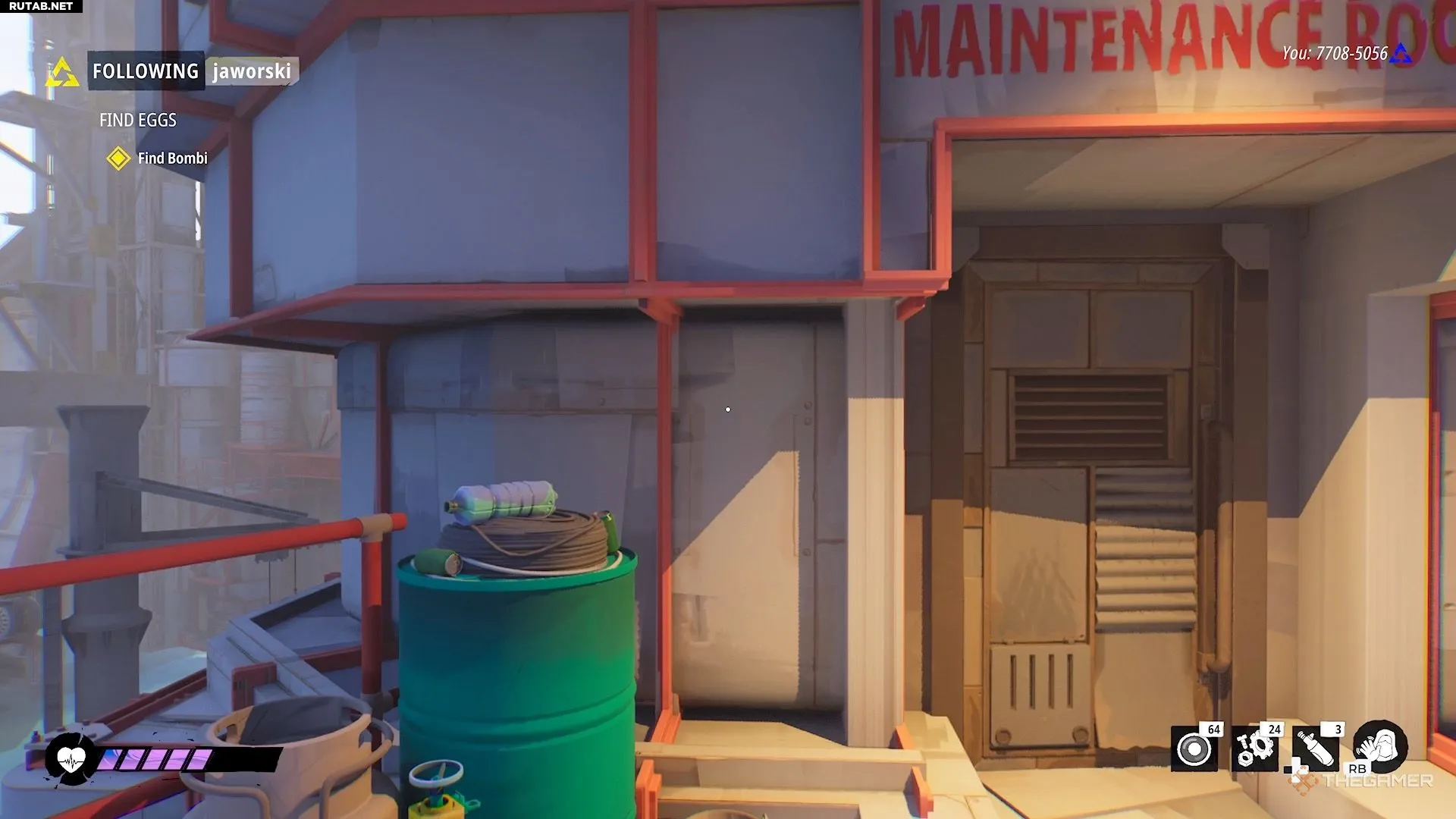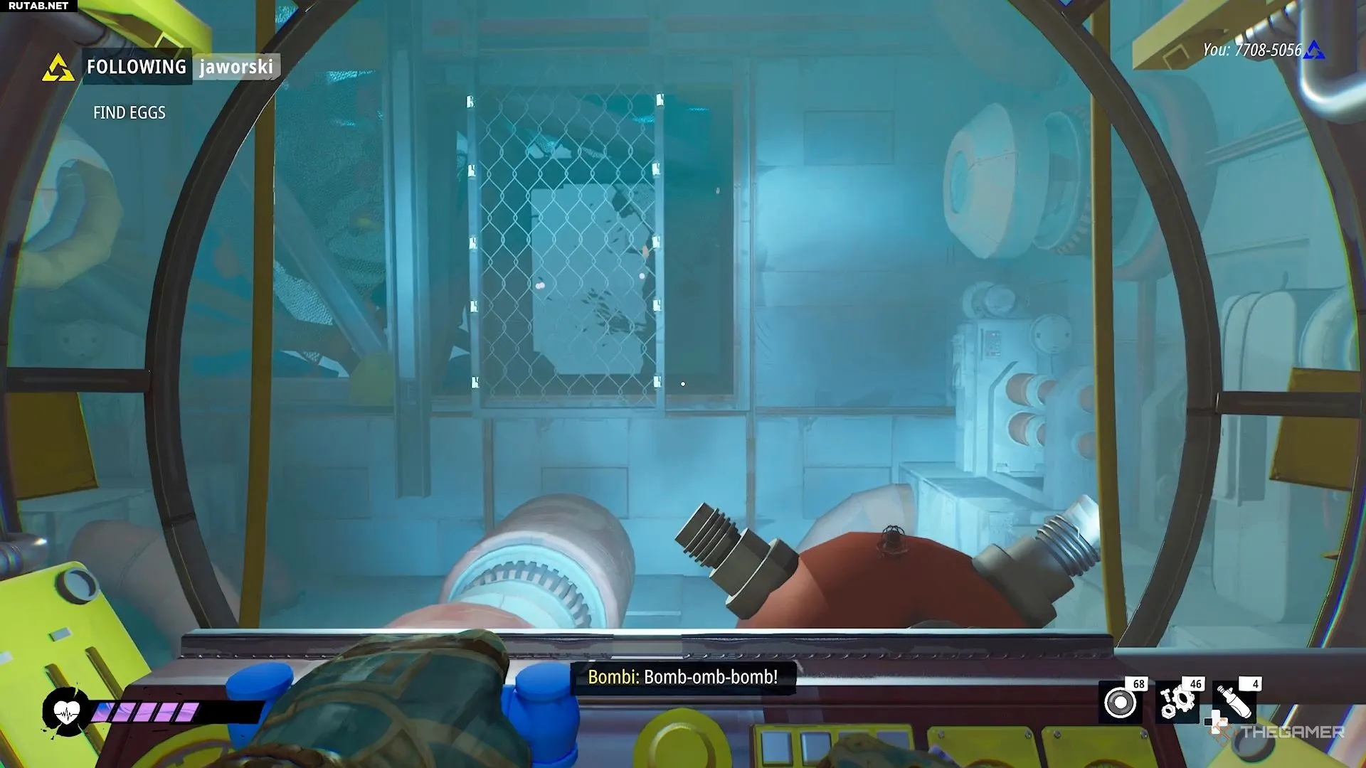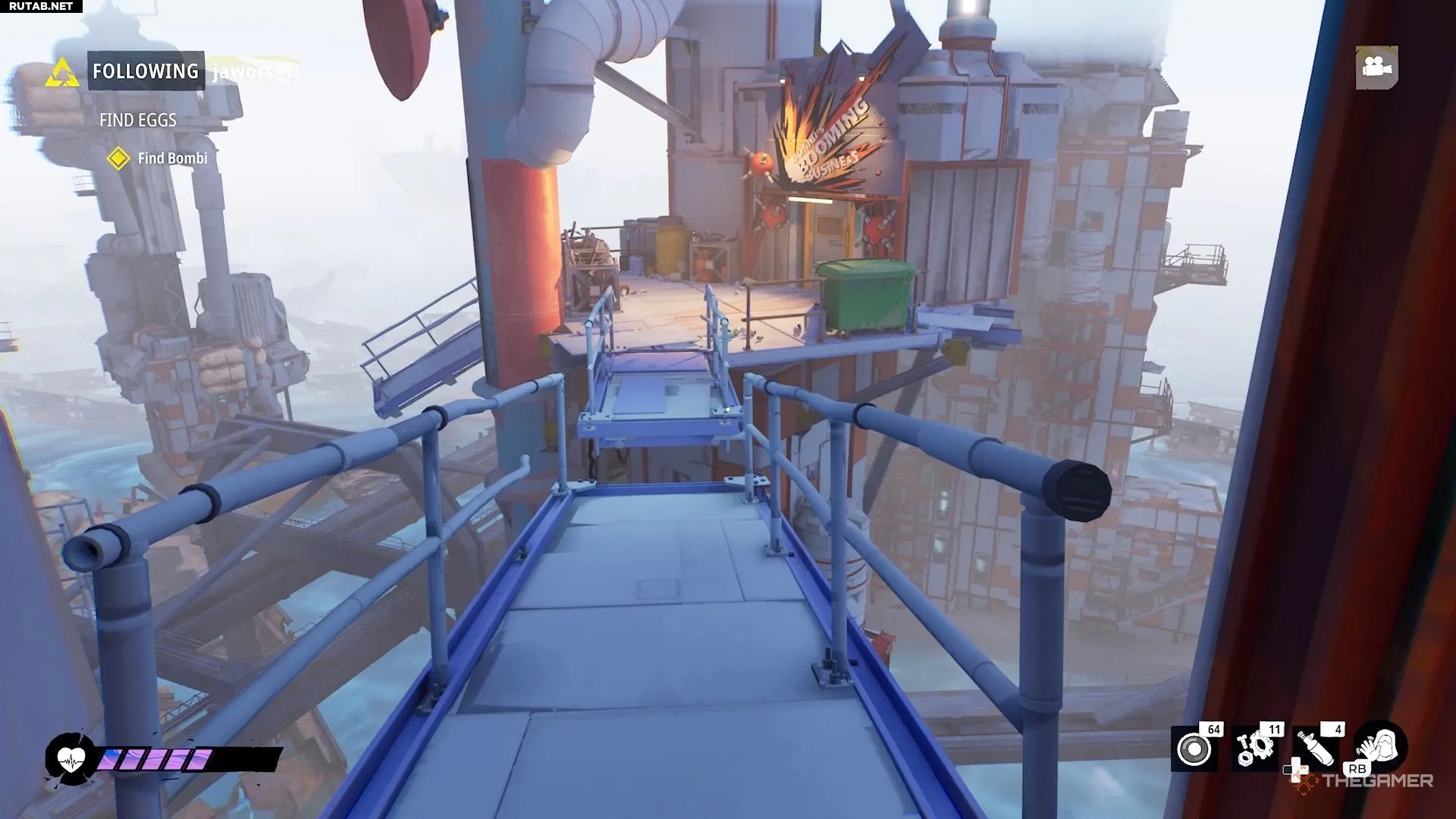Затем перепрыгните через разрыв в дорожке и войдите в убежище Бомби, где вас ждет еще один лифт.