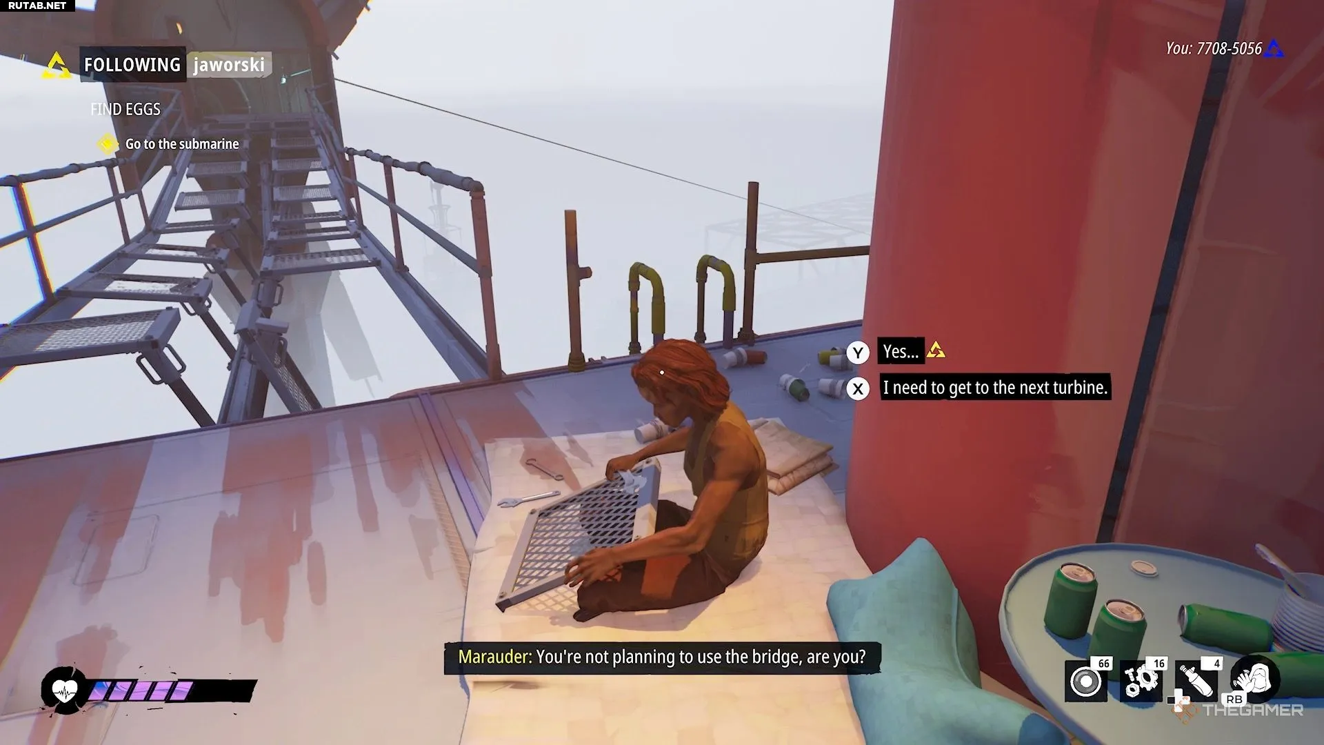Закончив разговор с Бомби и, возможно, Эйлой, вам нужно направиться к подводной лодке. Заберитесь по лестнице, чтобы выбраться из его укрытия.
