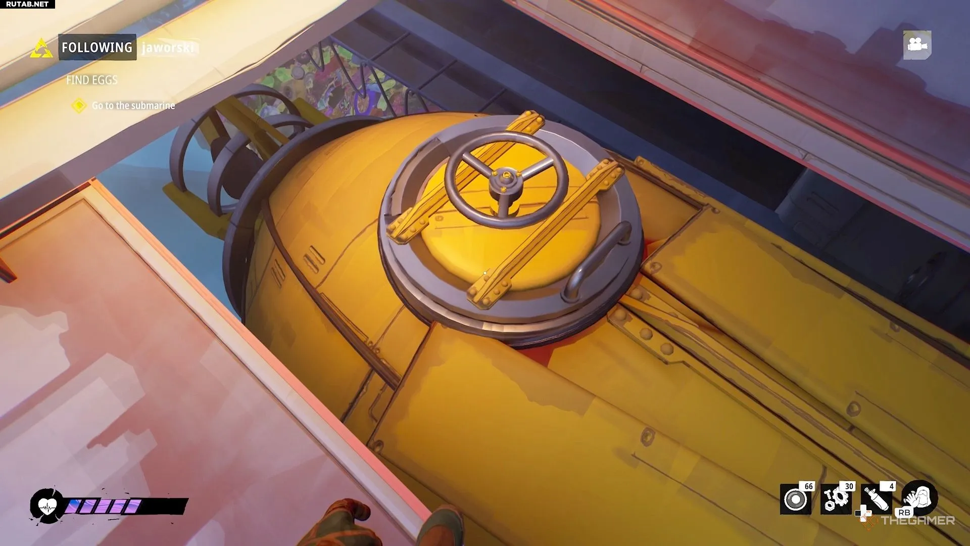 Для этого продвигайтесь вперед, минуя препятствия, в том числе небольшие вентиляторы, которые нужно уничтожить с помощью вакуума, прикрепленного к субмарине. Также собирайте все яйца, встречающиеся на пути.