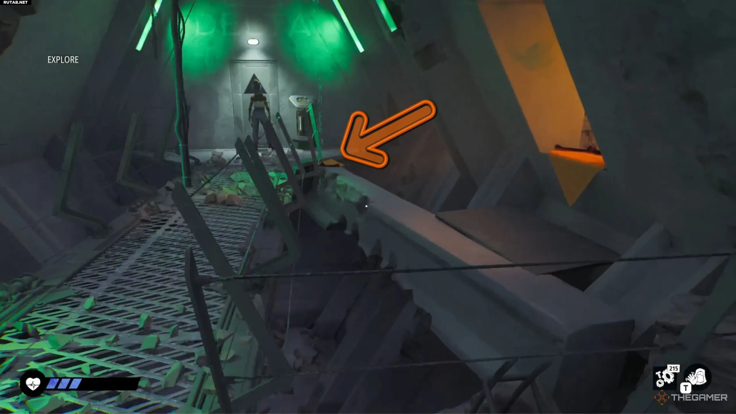 Попав внутрь комплекса, вам нужно пройти немного вперёд и спуститься на лифте в следующую часть. Перед тем как поехать вниз, обязательно осмотритесь в поисках дополнительного металлолома.