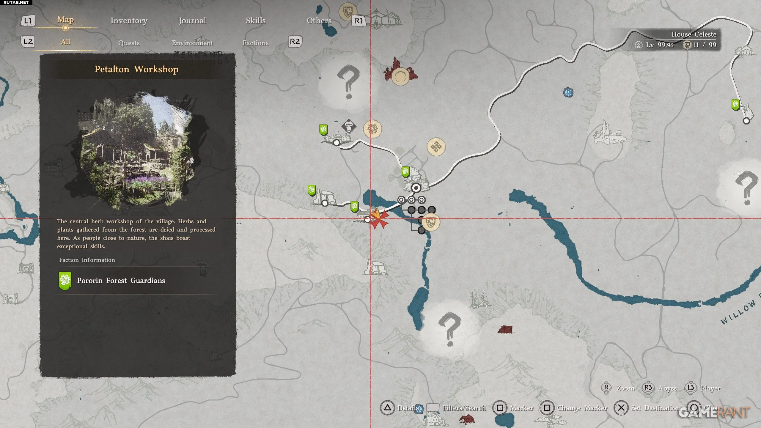 - Лаборатория Порорина находится в Мастерской Петалтон, что на юго-востоке Эрнанда (изображено выше).
