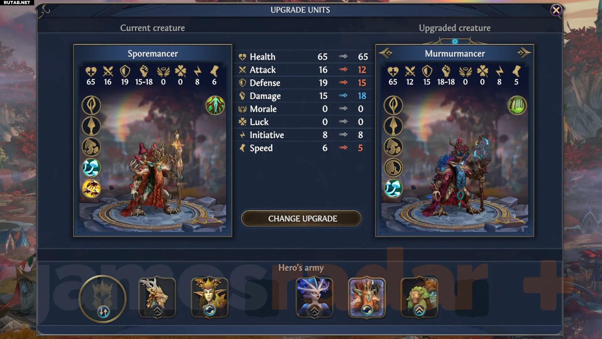 Хотя характеристики каждого отдельного юнита важны, статы вашего героя также влияют на всю армию, поэтому крайне важно уделять внимание прокачке героя. Некоторые строения на карте дают бонусы к атрибутам героя, включая Атаку, Урон и Знания. Чем выше эти показатели, тем сильнее становится ваша армия и способности героя.