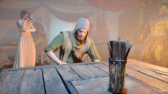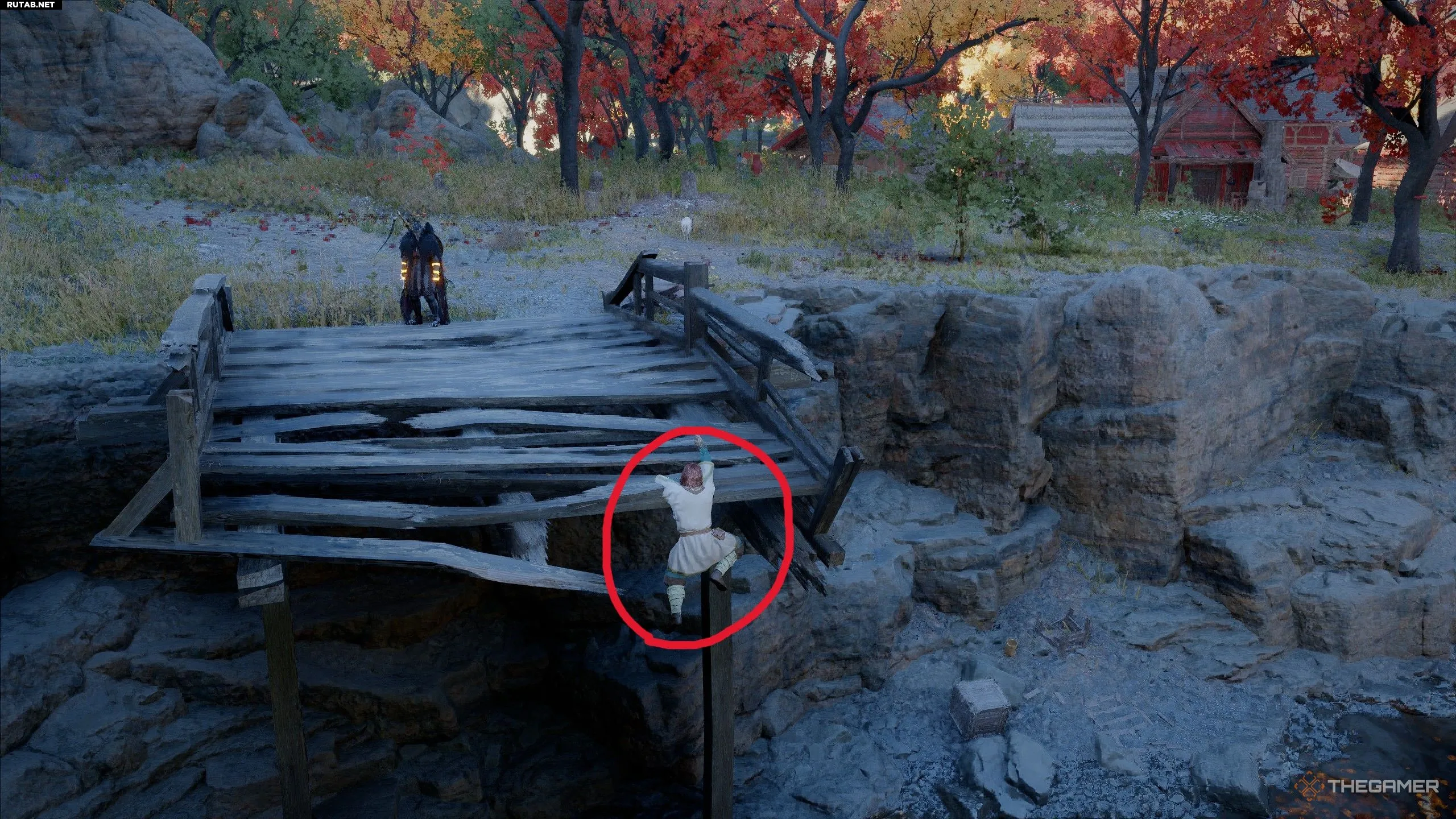 Когда у вас будет «Сумка Желтоклюва», следующим шагом будет открытие цепочки заданий «Ведьма смирения». Для этого направляйтесь на юго-восток в Пайлуне, пока не доберетесь до небольшой деревни под названием Бейген. У входа, с южной стороны города, будет разрушенный мост, за который цепляется мужчина.